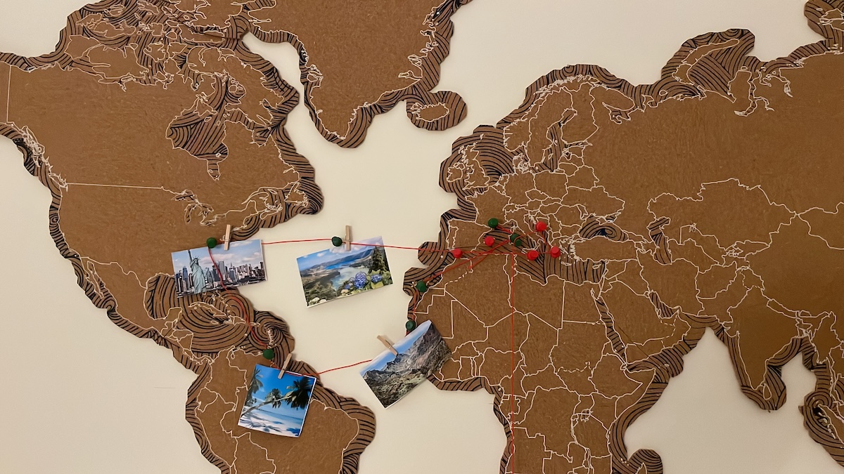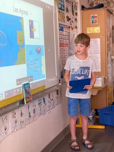 Pendant le mois de juin 2022, nous commençons à préparer la famille au voyage, le parcours est tracé sur la carte du monde en liège reçue par Antoine à son anniversaire, avec force photos de plages aux eaux turquoises et d’îles paradisiaques ! Martin décide de proposer à sa maîtresse de faire un exposé sur les Açores pendant lequel il décrira le voyage prévu !