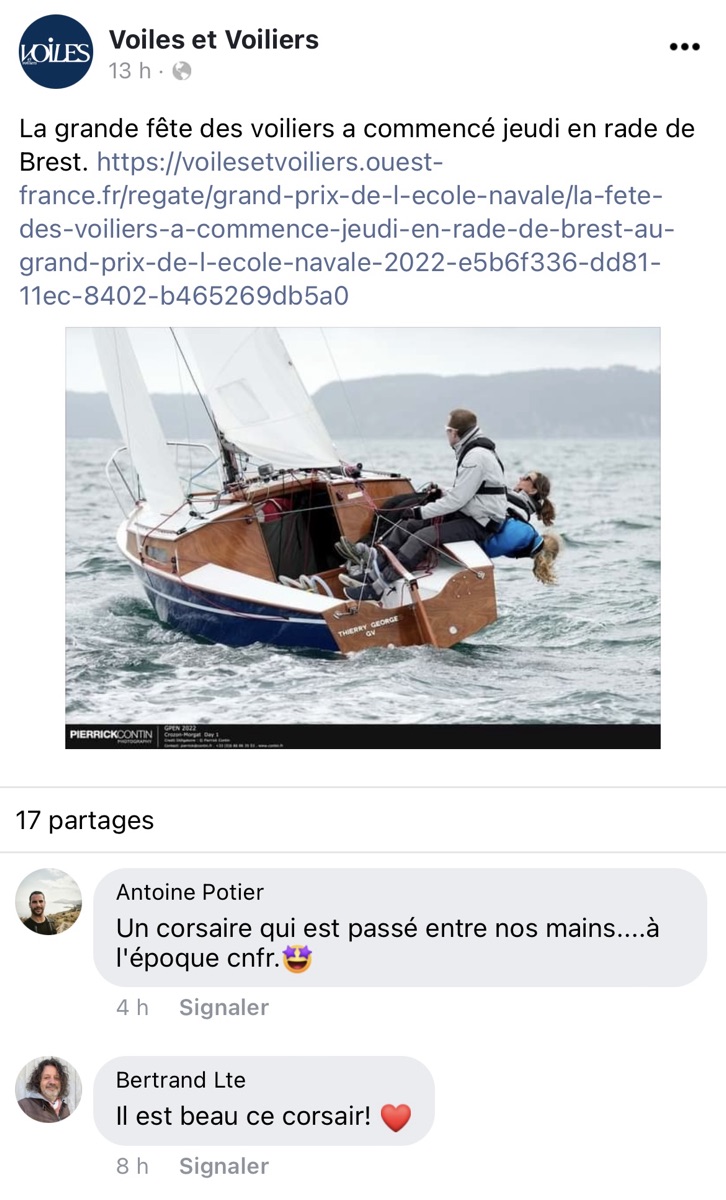 D’ailleurs, les circonstances de cette décision plaident dans ce sens. Nous (Antoine, Magali, Arthur et Alice) sommes à Morgat en train de courir le Grand Prix de l’Ecole Navale en corsaire. Antoine, Magali et Alice étaient sur notre bateau et Arthur sur un bateau copain. L’ambiance était excellente mais ne laissait pas beaucoup de temps pour gérer le reste ! (Notre bateau et son équipage étaient les plus beaux et ont été mis à l’honneur sur le site de Voiles & Voiliers)