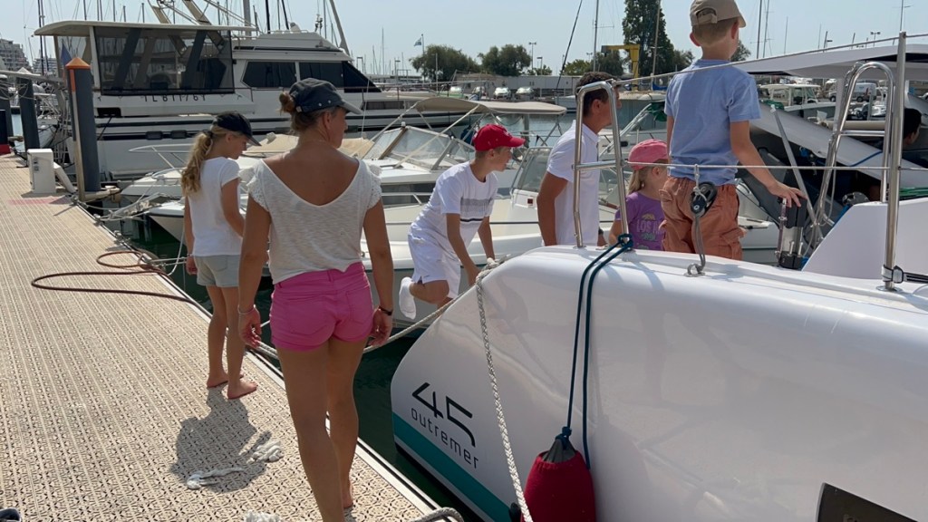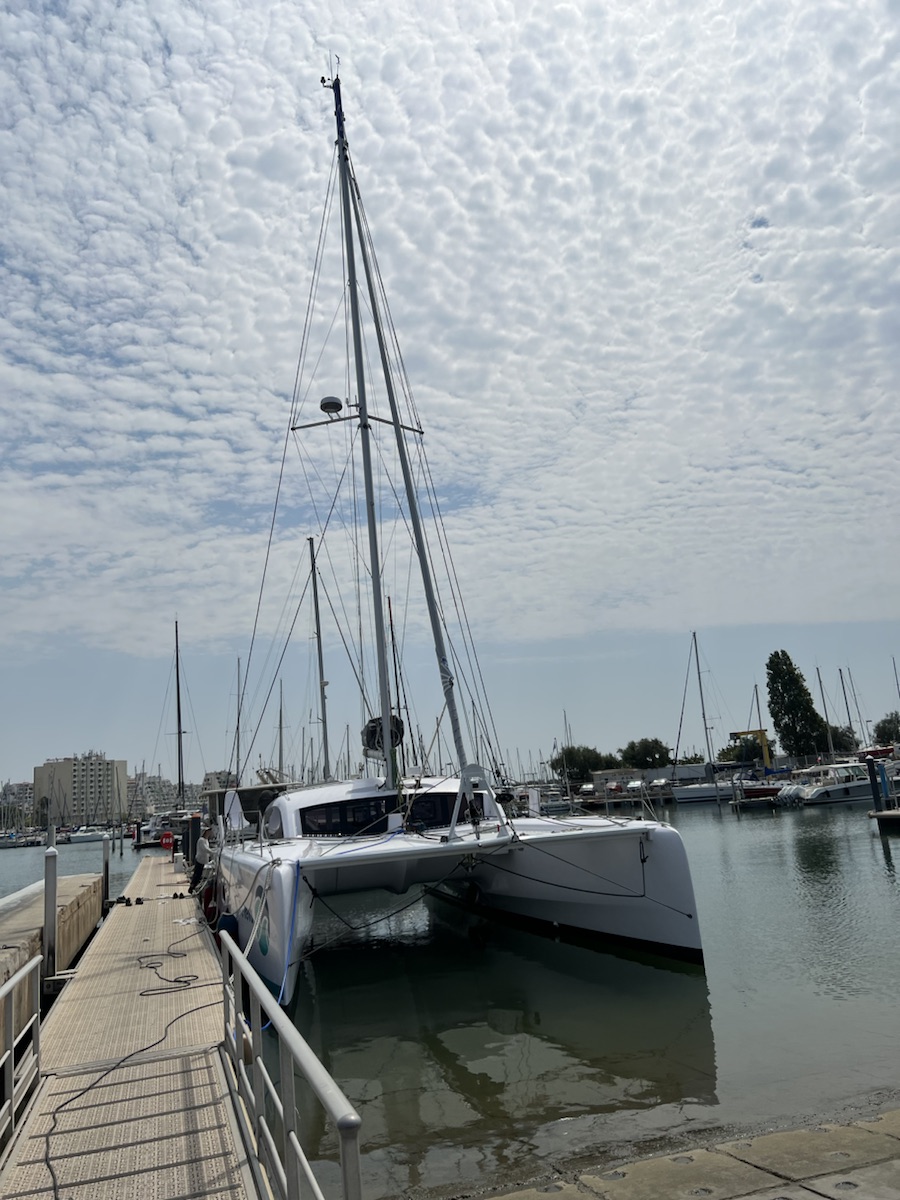 Après un dernier regard sur le ponton, nous partons déjeuner avant le RDV à 14h avec Romain et Julien, le skipper maison d’Outremer, pour essayer un bateau.