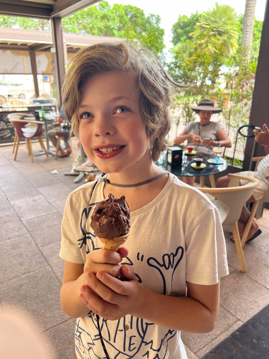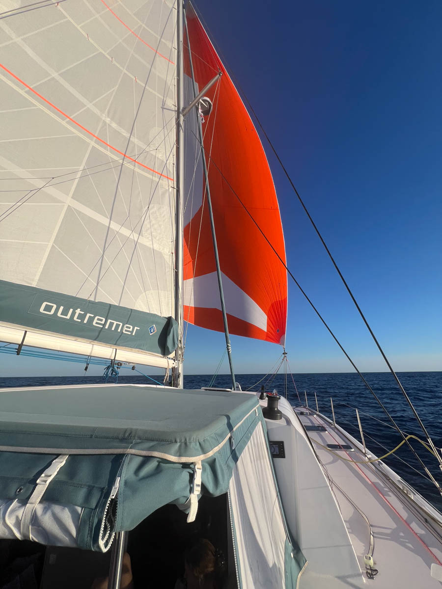 Le retour au bateau est tranquille grâce au bouton du portail de la marina (pas besoin d’escalader le mur). L’après-midi ce sera repos et cuisine : Mathilde nous fait un apéritif de bateaux de tomates mozzarella et voiles en jambon cru. Magali essaye le gâteau au chocolat dans le four à gaz du bateau.