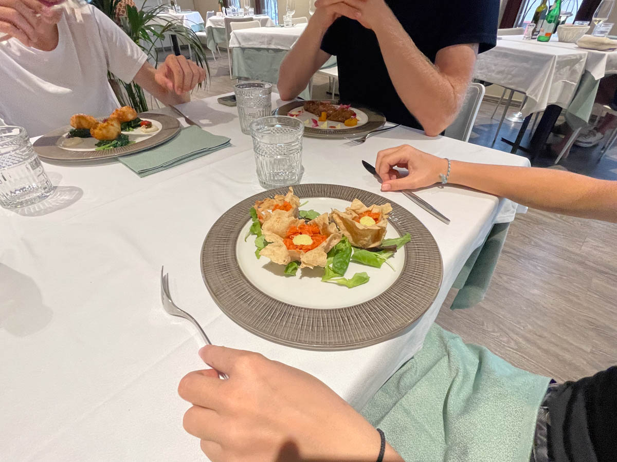 Le temps est gris et ne donne pas envie d’aller à la plage. On profite alors d’être près d’une marina pour aller à la laverie (les serviettes de plages mouillées à l’eau de mer n’ont pas séché), au shipshandler (un nouveau chapeau pour Antoine et une gaffe à crochet pour attraper les poissons que nous espérons pêcher un jour) et faire un tour à l’épicerie du camping local. Les enfants jouent dans l’aire de jeux du port avec ceux d’Ilo après un goûter glace. On réserve alors un super restaurant sur le port avec pizza, pâtes et poissons cuisinés de façon délicieuse.