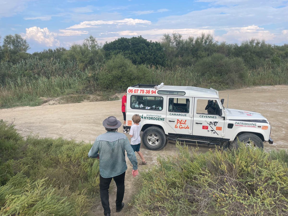 À 15h nous avons rendez-vous avec Phil le guide pour visiter la Camargue en 4×4 à hydrogène : c’est un ancien agriculteur passionné par sa région qui en fait visiter les coins cachés en dehors des routes touristiques. Nous en apprenons plein sur la géologie, la faune, la flore, l’histoire et les traditions.