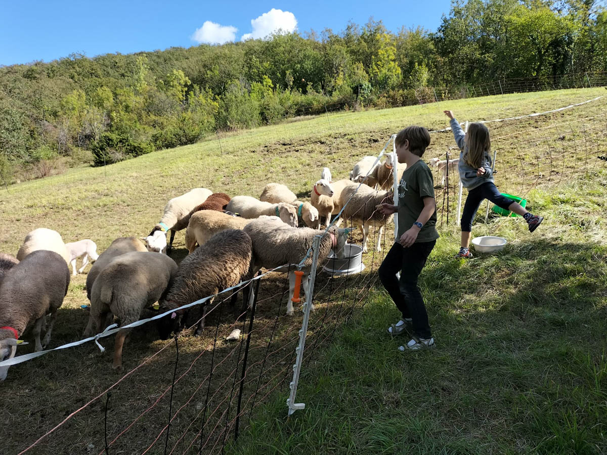On essaye de faire des petites balades l’après-midi quand il ne pleut pas pour nous dégourdir les jambes et aller voir les moutons tondeuses des collines.