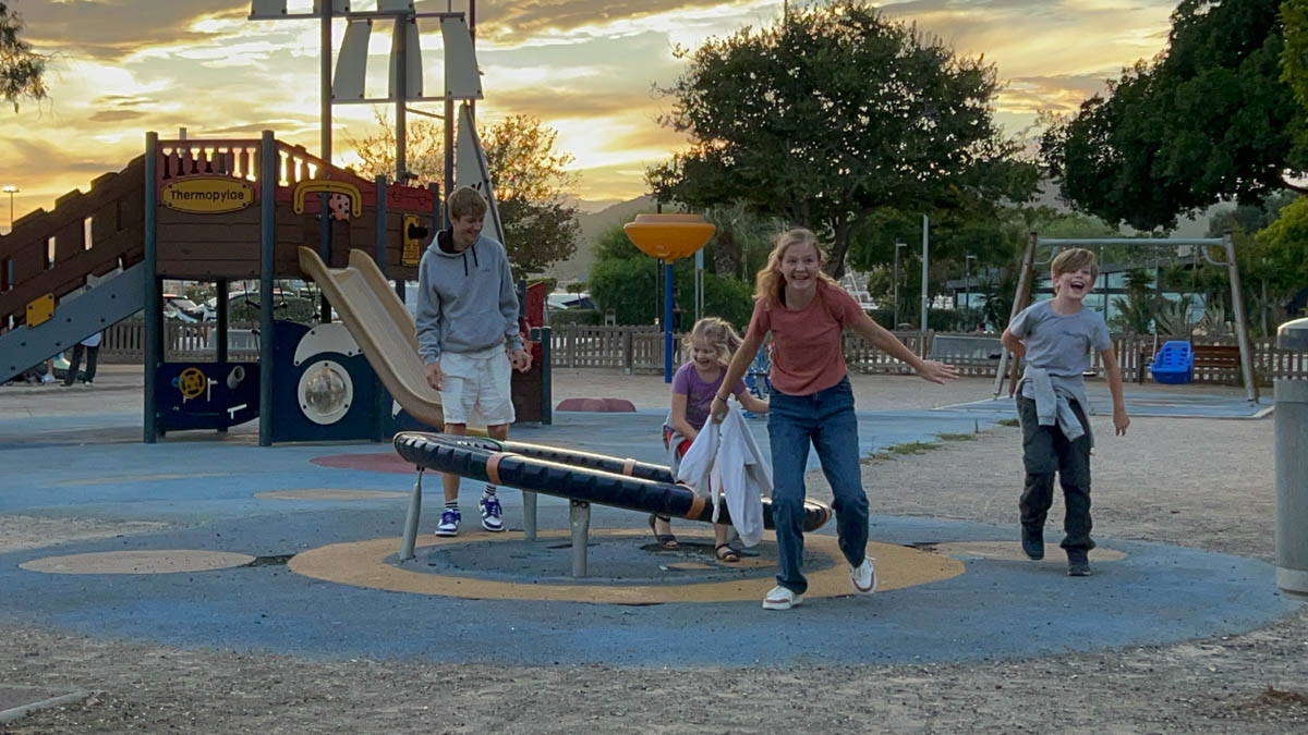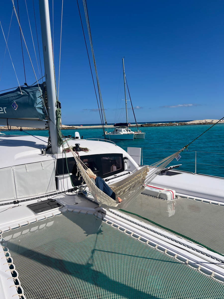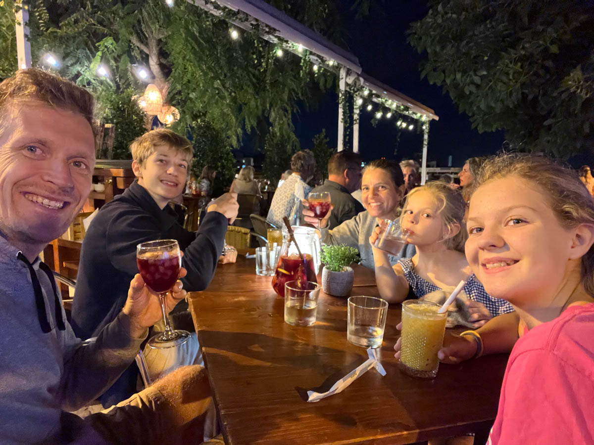 En début de soirée nous avons rendez-vous pour un apéro sur la plage avec Apsara, Keep Kool et Malea. Apsara est un Outremer 45, Dennie et Babette sont néerlandais, ils ont leur bateau depuis un an et partent en voyage sans date de retour. Pendant leur hiver en Sicile ils ont rencontré d’autres bateaux avec enfants, dont Keep Kool et Malea qui naviguent avec eux sur la route des Antilles. Nous sommes de 5 nationalités différentes, ça fait un beau mélange cosmopolite ! Mais tout le monde parle anglais pour partager nos expériences de voile pour les hommes, de vie à bord pour les femmes et de jeux pour les enfants. C’est super sympa de pouvoir échanger avec d’autres.