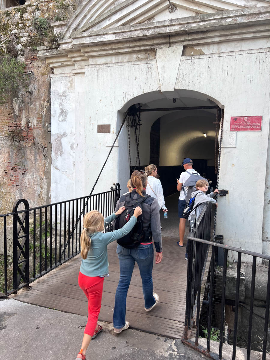 Enfin nous entamons la descente (entrecoupée de remontées car le rocher est vallonné) en nous arrêtant dans les tunnels militaires qui ont été creusés à l’époque du grand siège des espagnols et des français napoléoniens. Les galeries ont été creusées à la pioche sur plusieurs centaines de mètres pour pouvoir accueillir les canons. Un peu plus loin les tunnels de la seconde guerre mondiale sont encore plus grands mais nous avons déjà trop marché pour oser nous aventurer sur le parcours qui tournent à l’intérieur pendant près d’une heure. Nous continuons la descente jusqu’à l’arrêt de bus qui va nous ramener à la frontière. Le soir nous sommes bien courbaturés et nous nous faisons livrer des pizzas (sous la pluie) pour dîner.