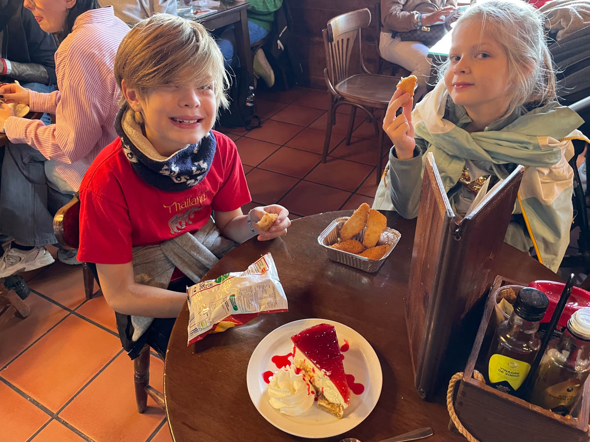 Pendant la traversée Mathilde a réussi à continuer l’école, Martin et Alice un petit peu. Donc jeudi 24 octobre tous reprennent l’école. Nous déjeunons avec le thon qu’Ilo avait pêché et nous avait donné à Torreviaja, à la fois en pavés de thon juste snackés et en ceviche thon-oignon doux-tomates… tout est délicieux. Le paquet attendu n’est toujours pas arrivé… Nous allons devoir rester une nuit de plus à la marina pour l’avoir demain. Le livreur ou la marina a refusé de livrer ou d’accepter le paquet car le nom du bateau n’était pas mentionné…