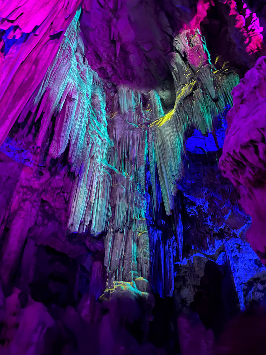 Nous déjeunons dans un restaurant à l’abri des singes, le décor ressemble à un refuge de montagne à la sauce écossaise, mais ça nous fait du bien de nous remplir le ventre. De là nous allons admirer la St Michael Cave (grotte saint Michel) car qui dit rocher calcaire, dit grottes. Il y en a 150 paraît-il ! Celle-là est la plus grande avec de magnifiques draperies de pierre qui sont éclairées par un spectacle de son et lumière. C’est magnifique ! Il y a même une salle de spectacle assez grande pour accueillir 400 spectateurs assis. Pendant la guerre, l’ensemble a été utilisé comme hôpital.