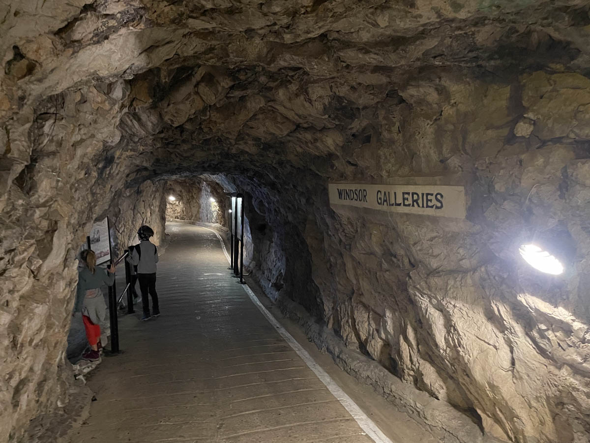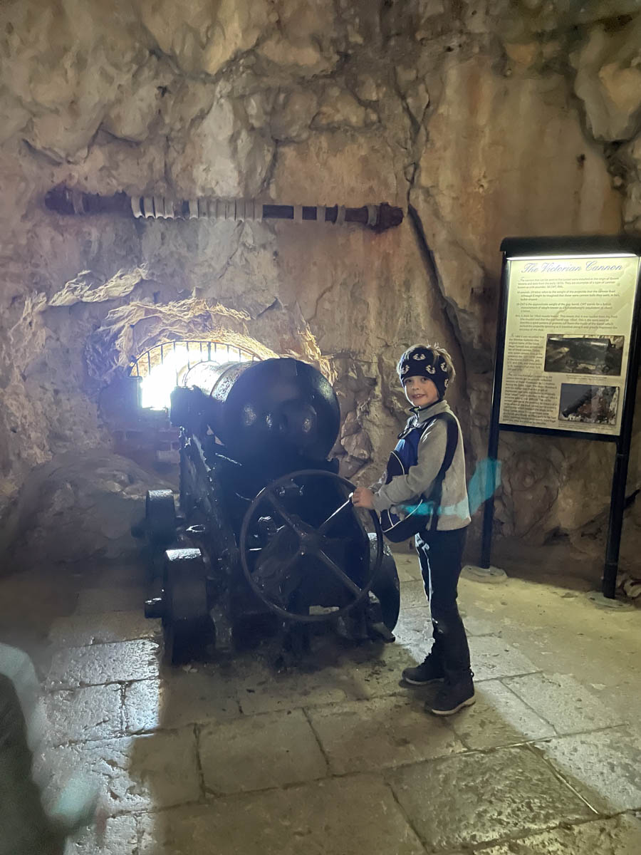 À peine sorti du téléphérique, nous tombons nez à nez avec singes en liberté emblème du rocher. On ne sait pas depuis combien de temps qu’ils sont présents mais beaucoup des légendes racontent qu’ils seraient arrivés d’Afrique par un tunnel et que si les singes disparaissent, les anglais partiraient aussi. Pour l’éviter Churchill aurait introduit d’autres singes en plus. D’ailleurs il y en a partout, ils sont très chapardeurs de nourriture et on n’a pas le droit de manger dehors. Il y a même un gros singe qui a sauté sur le dos de Magali attiré par l’odeur des gâteaux au fond du sac à dos fermé. Heureusement un gardien est sorti pour le faire fuir. Après nous avons tous mis nos sacs sur le ventre !