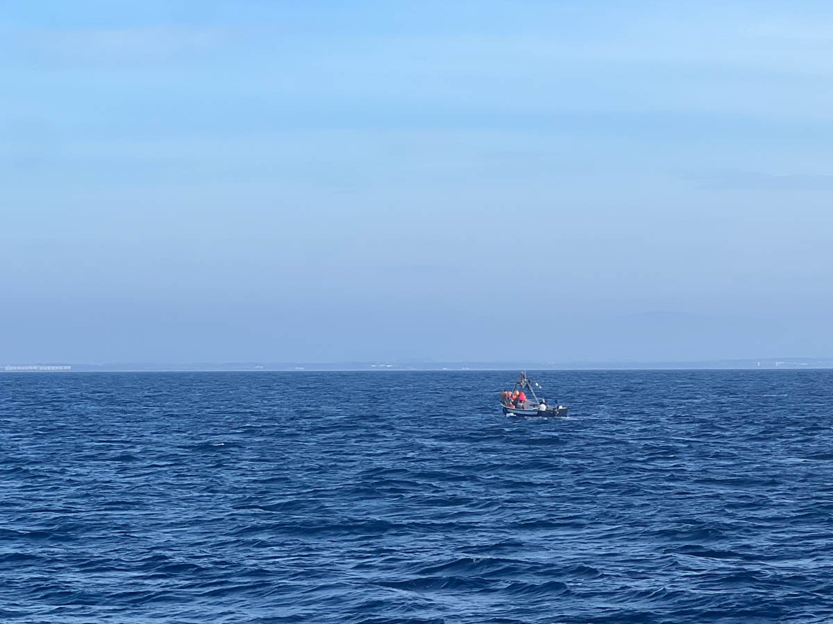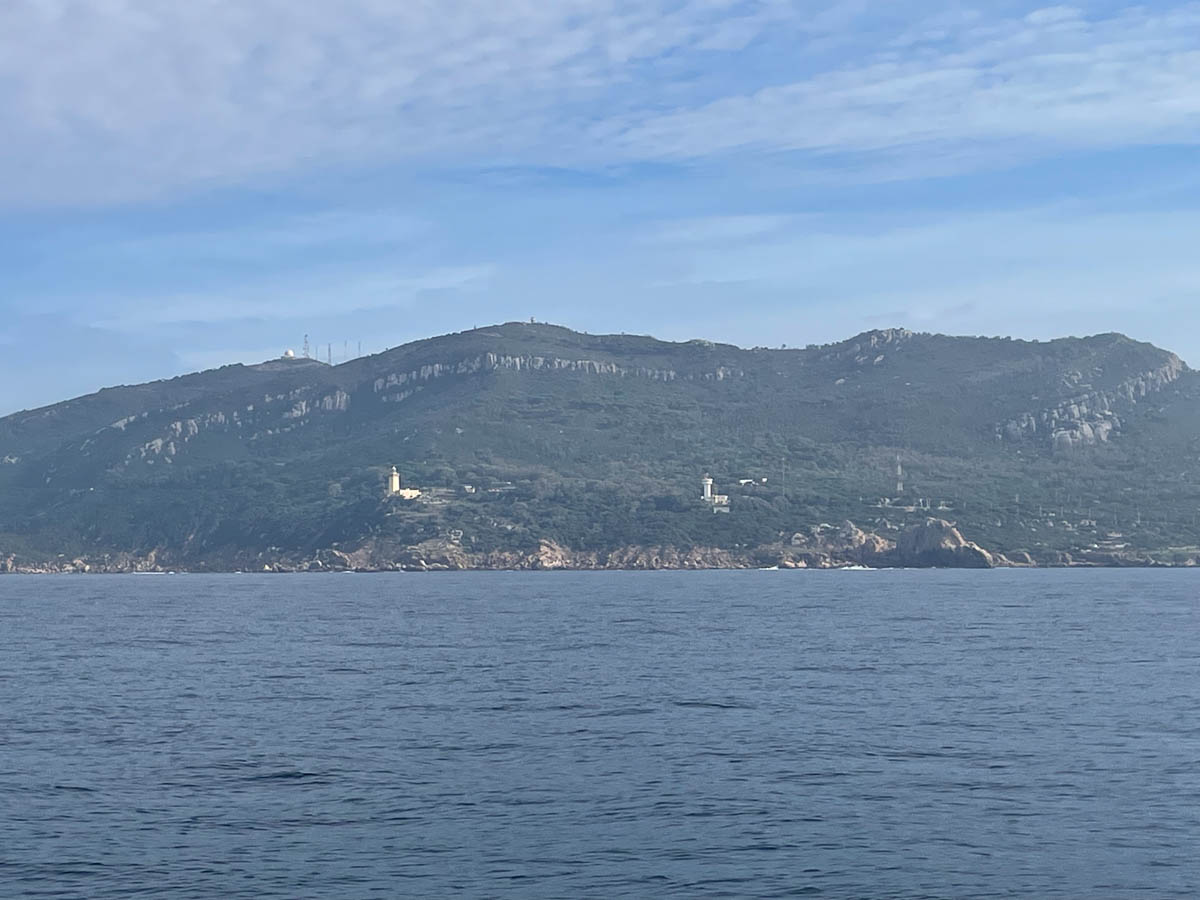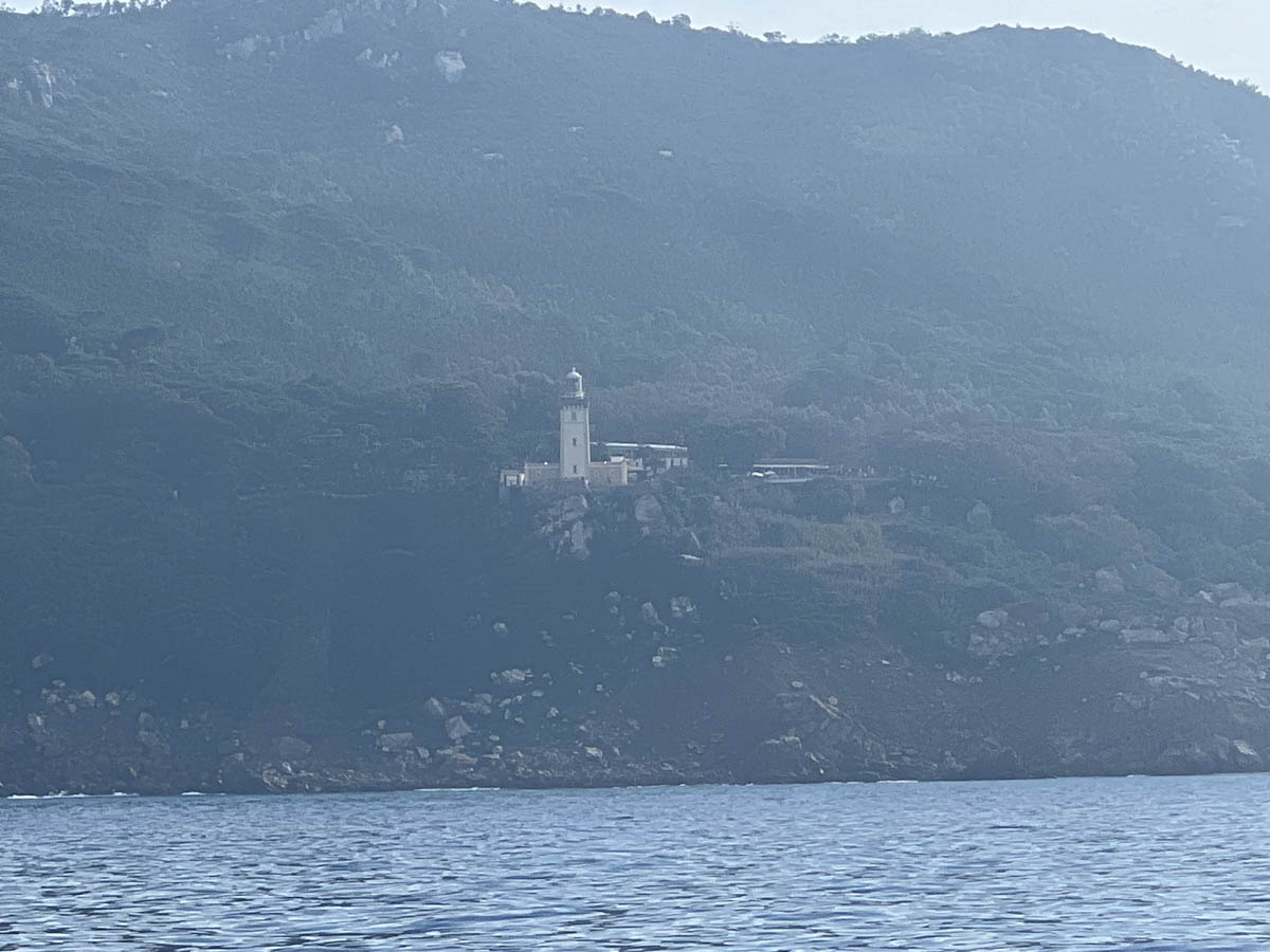 Le vent étant aux abonnés absents, nous partons au moteur en longeant la côte dans l’espoir d’avoir un peu moins de courant que les copains qui avancent lentement contre le courant à 1MN de la côte. Nous voyons les pêcheurs dans ce qui semble être un remous à 500m de la côte et nous décidons de passer entre eux et la côte, ce qui semble nous mettre dans un bon contre-courant puisque nous avançons à plus de 5nds à 1800tr/min sur un moteur au lieu de 4nds. Les copains sont plutôt à 3nds au large et nous rattrapons ILO vers 14h au cap Spartel qui marque la frontière officielle entre les eaux de l’Atlantique et celles de la Méditerranée.