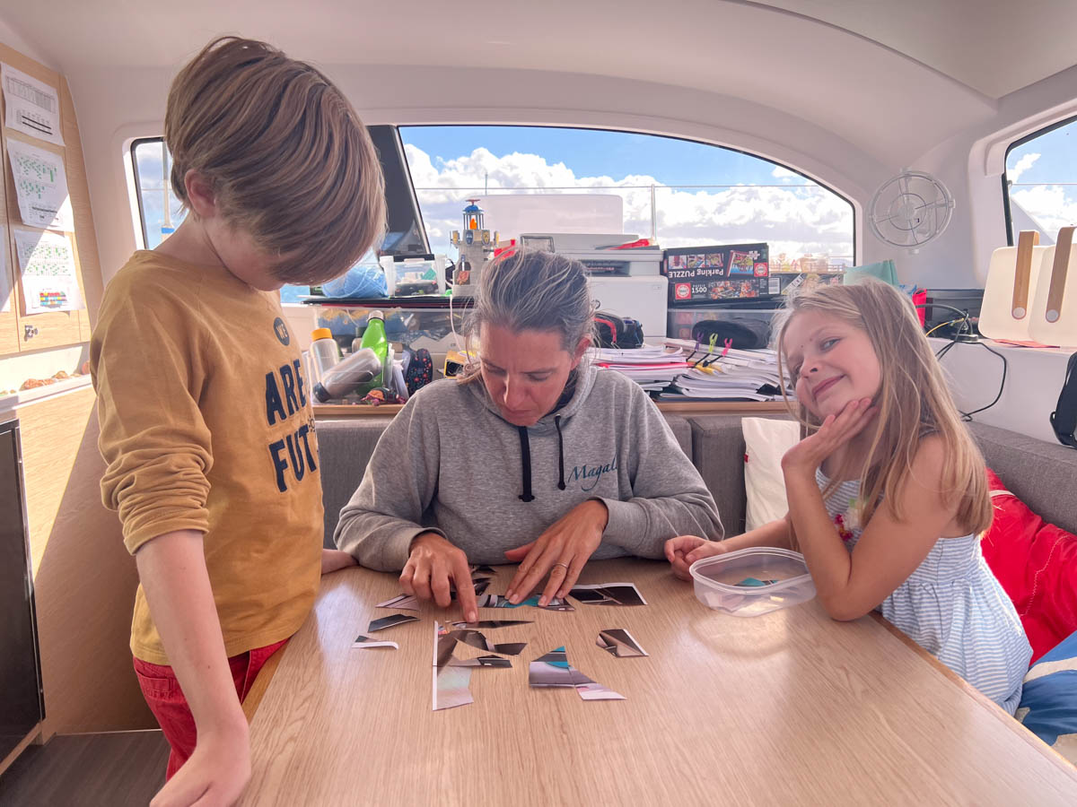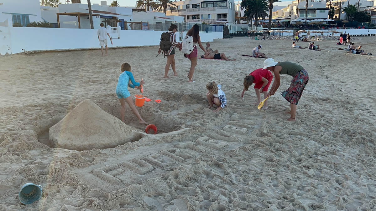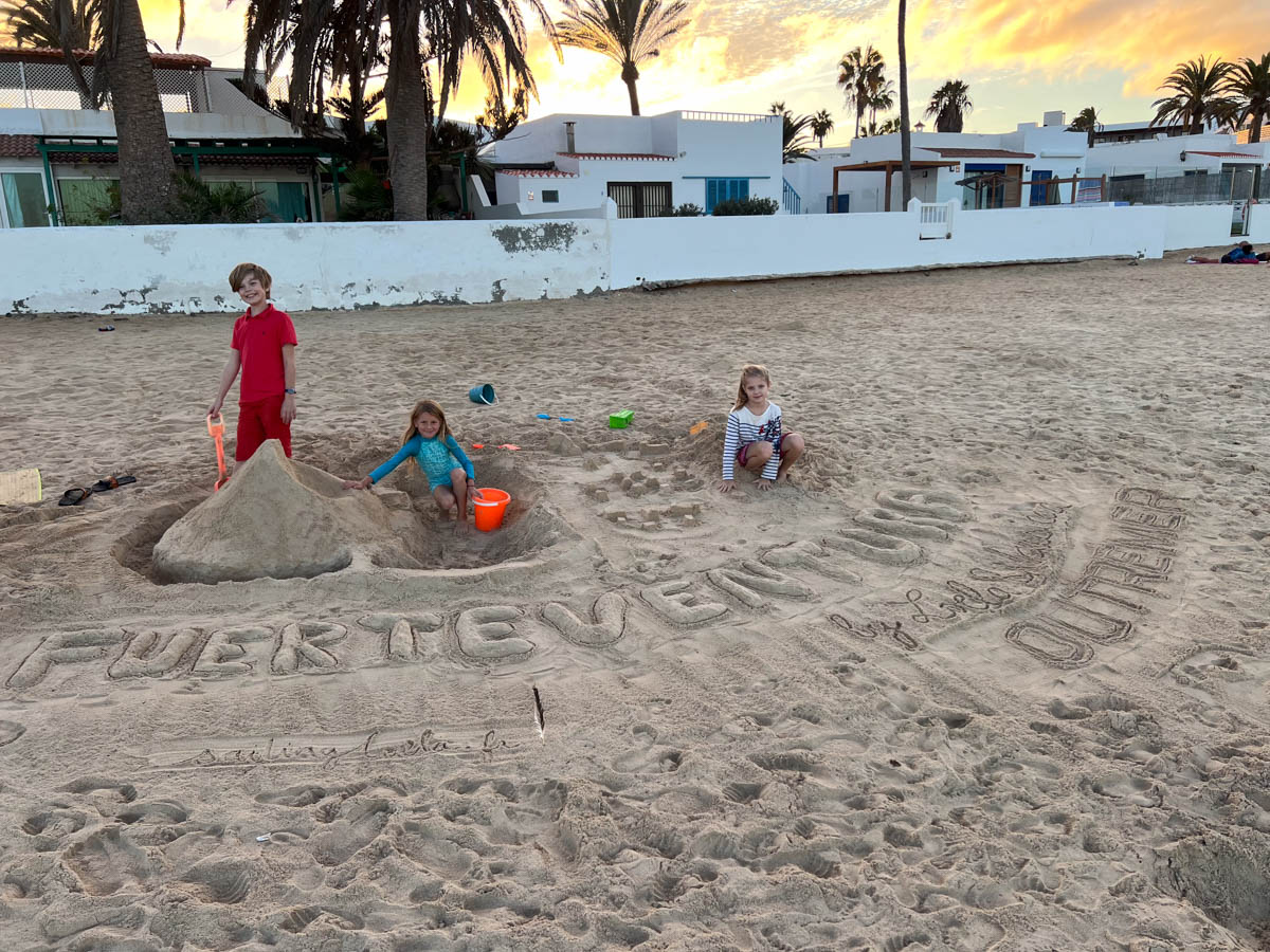 Lundi 18 novembre, on reprend la semaine d’école puis on va à la laverie pour Magali et à la plage pour les enfants. Ils construisent un magnifique volcan en sable avec Zoé signé de nos noms de bateau. On se retrouve pour une dernière glace / waffle avant de rentrer à bord de nuit à 18h30.