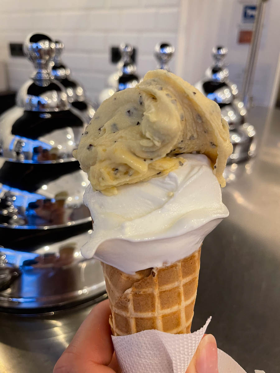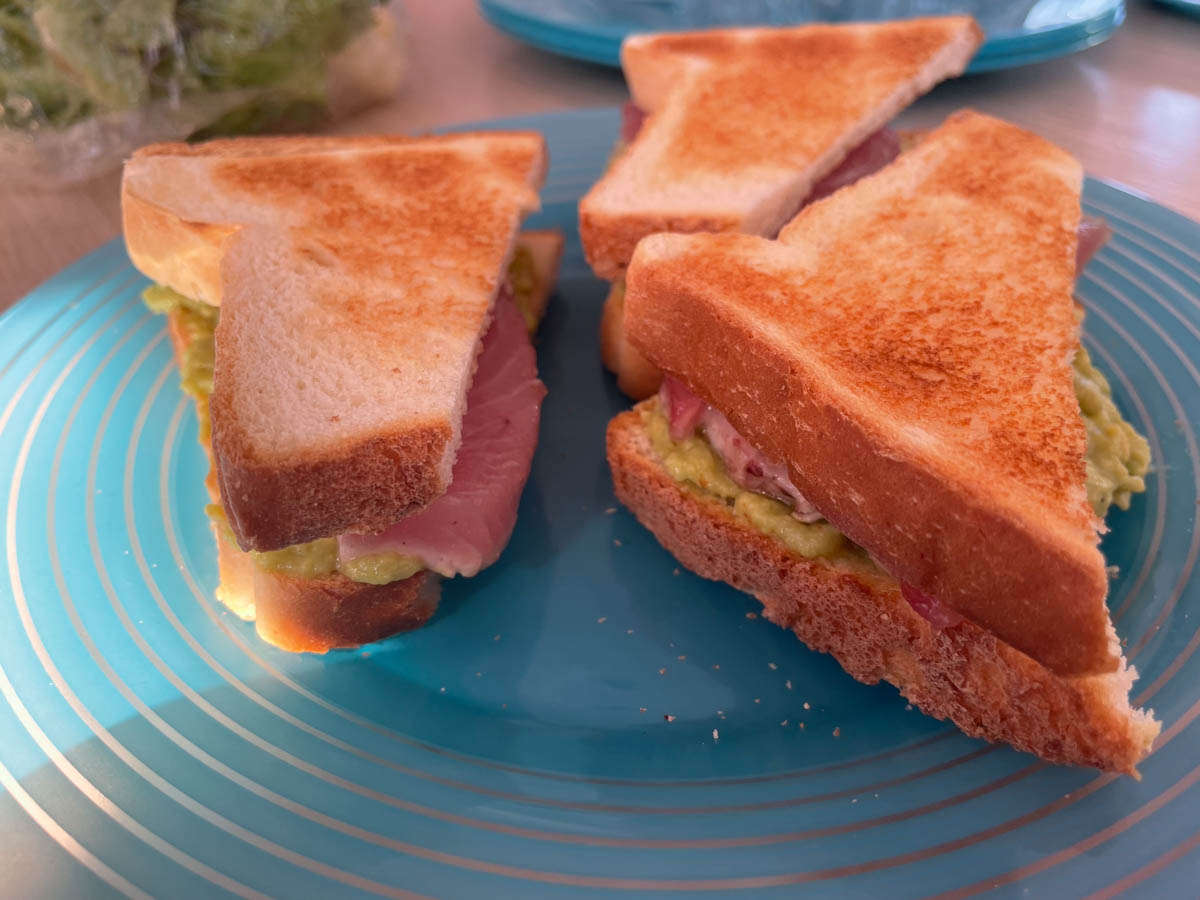 En arrivant au dinghy dock, il y a tout un tas de boutiques et restaurants, Martin et Alice dégustent une gaufre Nutella Chantilly et les autres des cornets de glace très copieux. Nous nous installons dans les canapés du restaurant et nous rencontrons 2 skippers français qui voyagent en solo chacun sur leur monocoque. Nous échangeons nos expériences jusqu’à la tombée de la nuit.