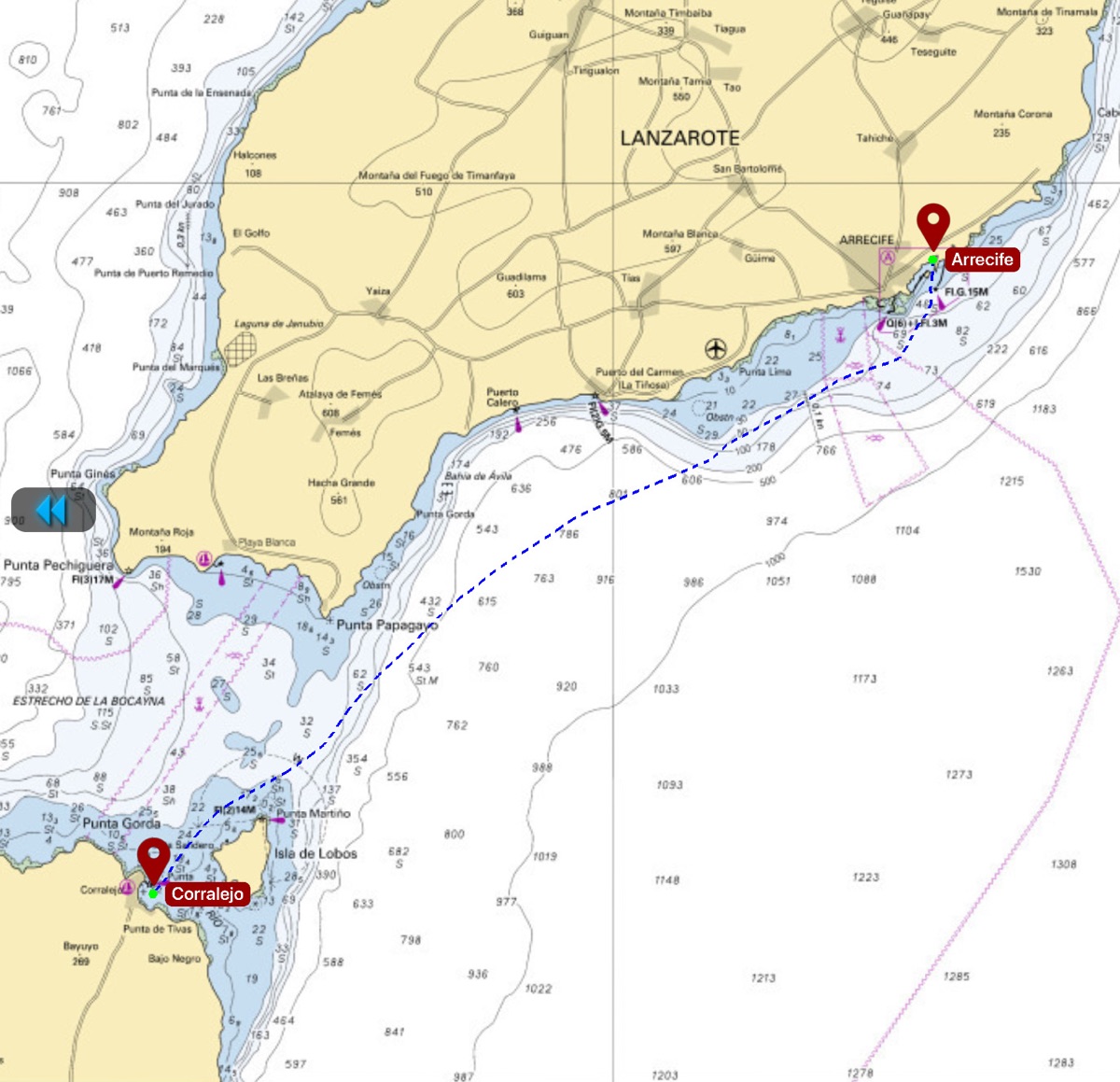 Jeudi 14 novembre le vent de sud ouest se lève vers 12h et nous pousse vers la côte, nous serons plus rassurés dans un autre mouillage. Nous partons vers Lanzarote près de Arrieta pour se protéger du vent d’ouest prévu. La navigation est rapide et nous arrivons pour le goûter. Une belle houle forme des vagues sur la plage et les quais, nous mouillons assez loin pour ne pas subir le ressac des vagues. Apsara essaye de débarquer pour un apéro à terre mais ce n’est pas possible car il y a trop de vagues sur la plage ou la cale des pêcheurs. Nous allons prendre l’apéro sur Apsara à défaut d’un bar à terre. Dans ces conditions nous irons chercher un autre endroit où nous pourrons aller à terre et visiter.