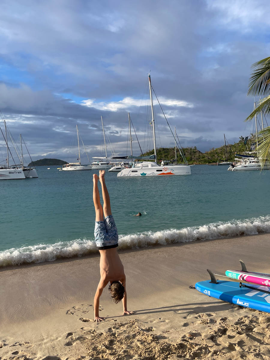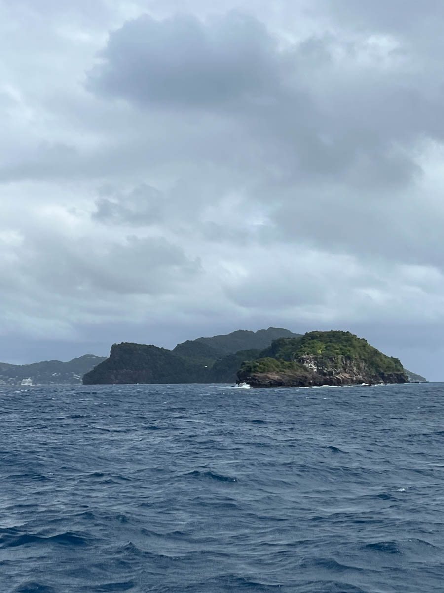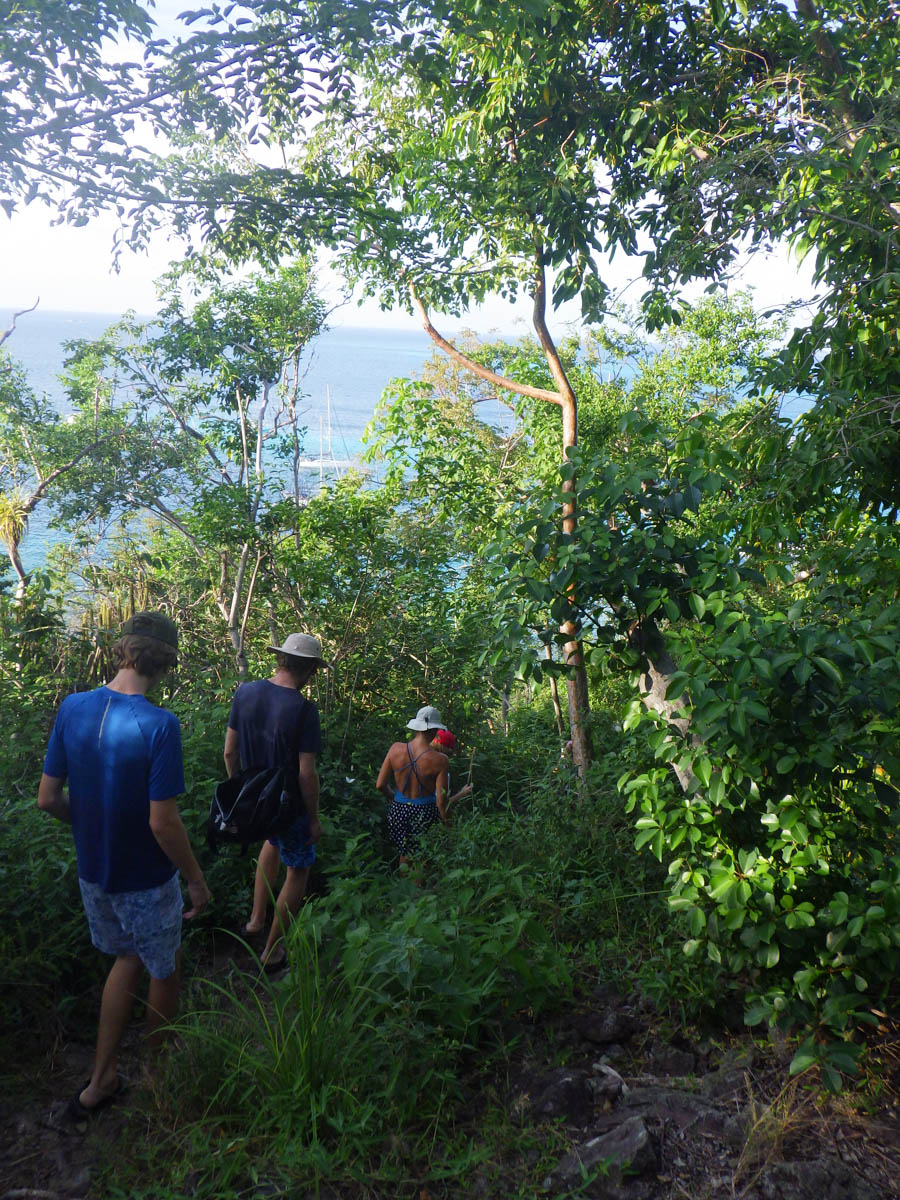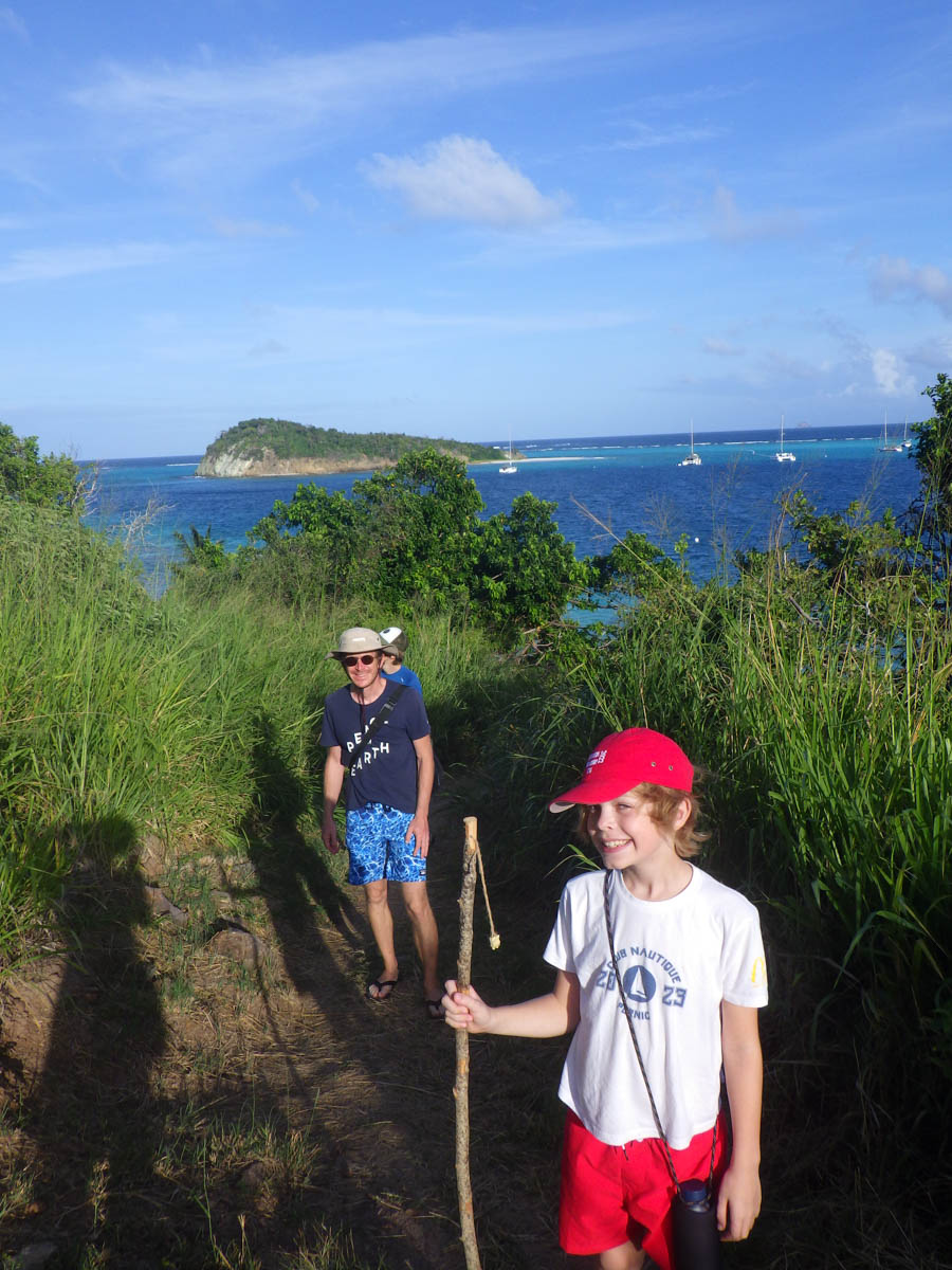 Mercredi 8 janvier pendant que les enfants travaillent Antoine part avec Mathilde faire la clearance de sortie mais le bureau est fermé. Mathilde s’achète un joli bracelet tortue avec les 20$uc qu’elle avait trouvé par terre sur la plage. On déjeune à bord sous les grains qui se succèdent. Le bateau est bien rincé ! Antoine retourne au bureau des douanes pendant que Magali fait un dernier snorkling dans les rochers. Nous disons au revoir à Malea qui nous donne des patch anti-mal de mer qu’Alice va essayer sur la navigation vers la Martinique.