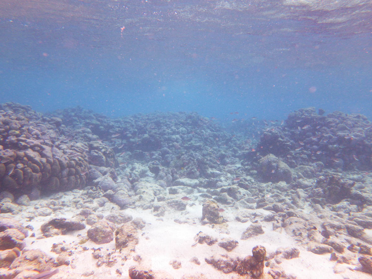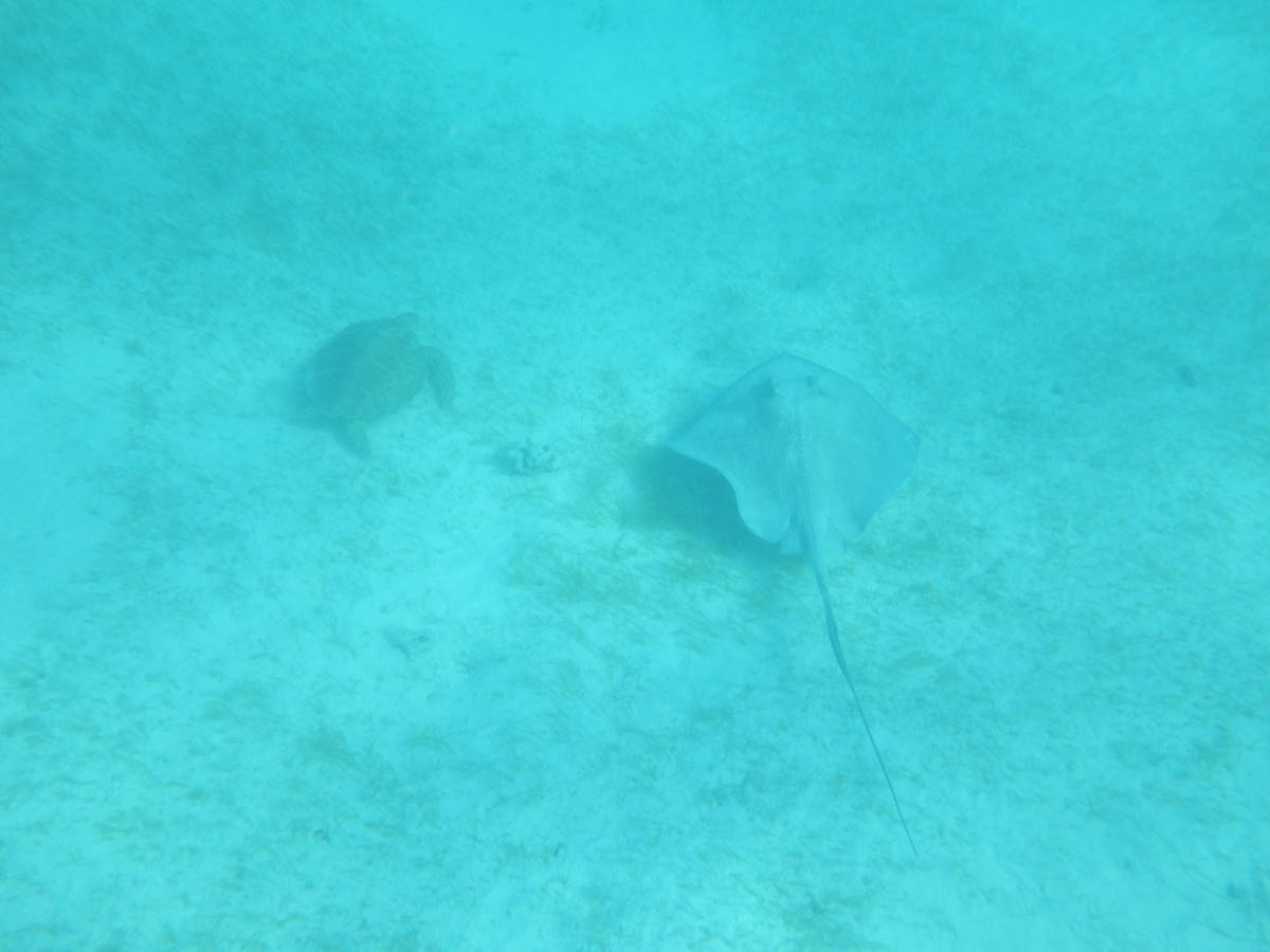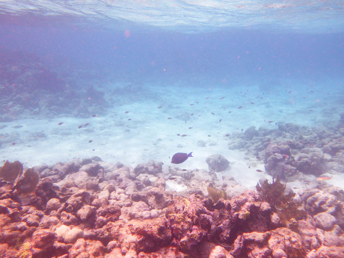 Lundi 6 janvier c’est la rentrée des classes pour les copains de France mais nous avons décidé de faire une matinée sportive et découverte en allant nager autour de la barrière de corail. Nous amarrons l’annexe sur une bouée près de la barrière de corail et nous partons en exploration sous marine de l’aquarium tropical. Il y a beaucoup de coraux cassés sans doute par les vagues de l’ouragan. Ils sont assez blancs du au réchauffement climatique. Mais il y a comme même une multitude de poissons multicolores et on en prend plein la vue.