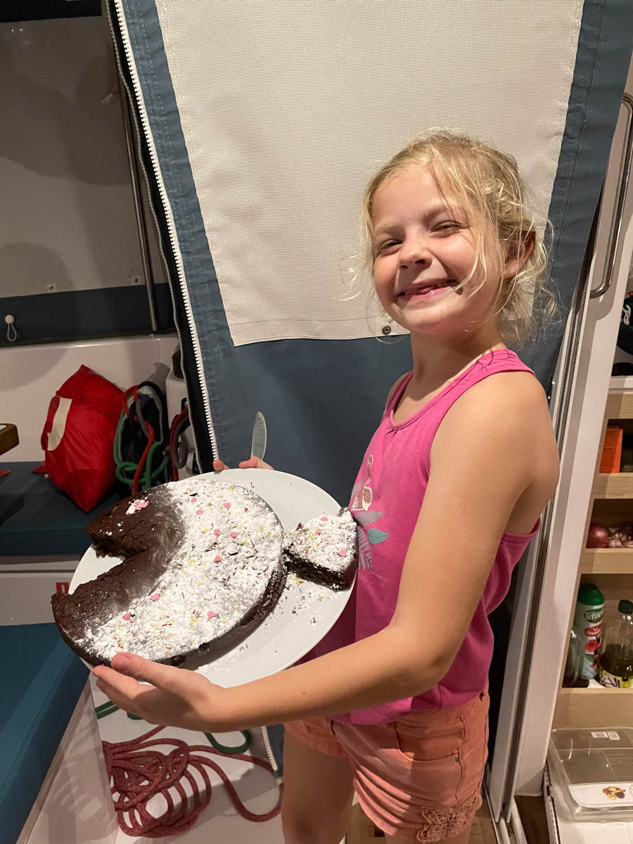 Dimanche 12 grasse matinée puis nous allons au parc aquatique de structures gonflables dans l’eau. Nous sautons tous les 6 sur les trampolines et glissons sur des toboggans. On s’amuse comme des fous mais Alice se fait mal au petit doigt de pied et Arthur au petit doigt de la main. Nous rencontrons l’équipage de Quillo qui sont germano-espagnols avec 2 filles de 14 et 12 ans. Nous allons jouer au ballon le long de la plage, le soleil tape et nous sommes contents de nous jeter dans l’eau. Nous rentrons au bateau rapidement car les parents se sont organisés une soirée en amoureux et les enfants vont faire un battle build Minecraft : ils ont 2 heures pour construire sur le thème « cabane dans les arbres ».
