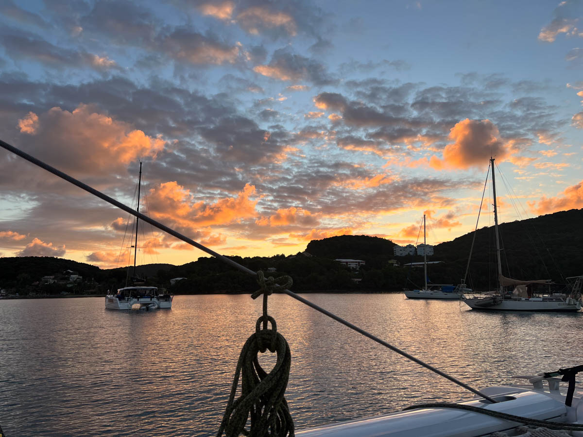 De retour au bateau il faut vite repartir du mouillage car une régate à lieu ce week-end et nous sommes dans la zone interdite au mouillage pour le weekend. Nous allons au moteur juste à côté à Sainte Anne.