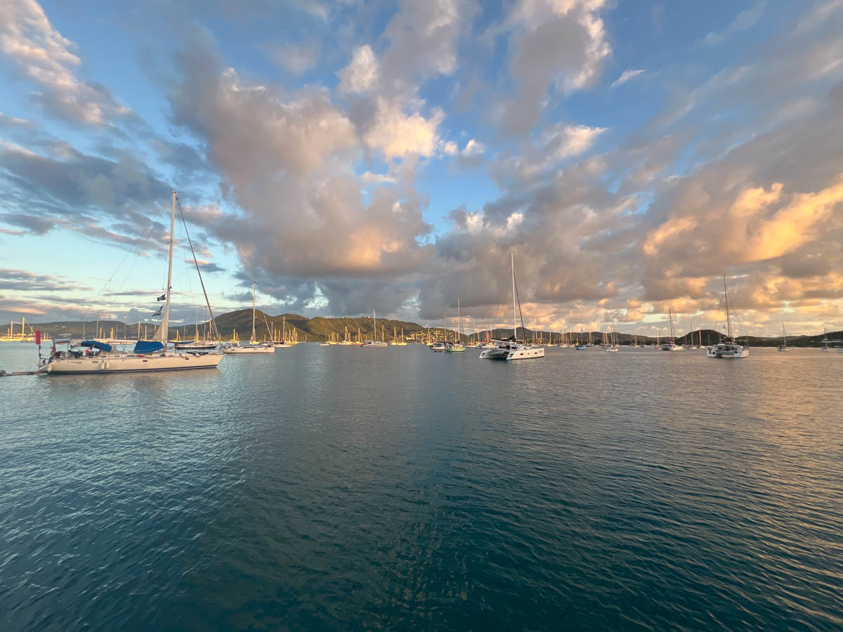 Samedi 11 janvier nous débarquons au dinghy dock devant l’église, c’est très grand et très pratique avec plein d’échelles pour mettre l’annexe et monter à terre. Nous déambulons dans les rues tranquilles du village avec nos sacs de linge jusqu’à la laverie. Entre 2 machines nous prenons un goûter glaces, barbe à papa et bubble wafle (depuis que les enfants ont découvert ça ils ne s’en lassent pas). Nous marchons jusqu’à la plage du nord et admirons le coucher de soleil sur la mer.