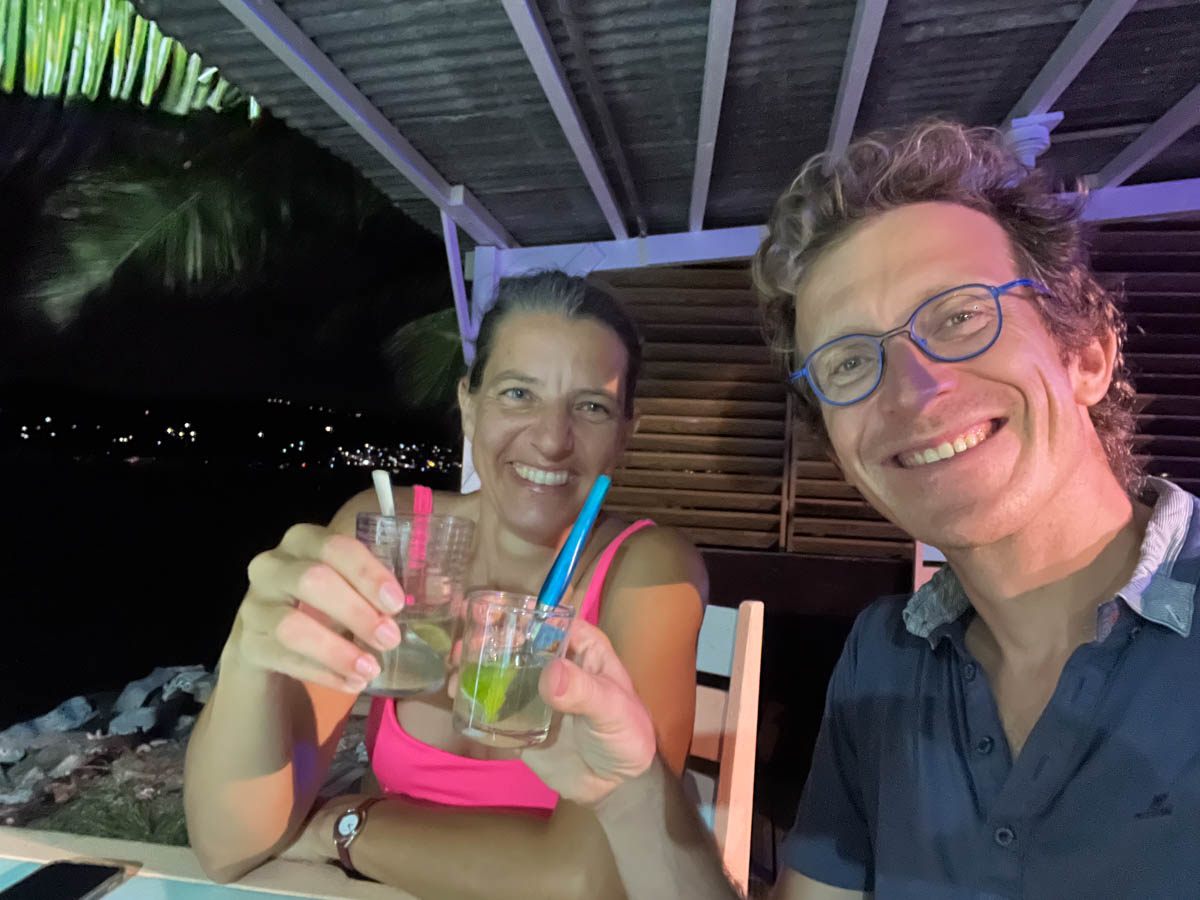 Nous louons une voiture pour aller faire le plein au supermarché du Marin car nos réserves sont au plus bas. Antoine va aussi acheter un testeur de salinité de l’eau pour vérifier la production de notre dessalinisateur car nous avons un doute depuis quelques temps. Le test s’avère positif donc nous sommes rassurés, pas de membrane à changer. Nous sommes invités pour l’apéro à bord de Quillo, c’est un vieux monocoque qu’ils ont acheté en Grèce puis retapé à Barcelone pour partir un an faire le tour de l’Atlantique. Nous dégustons du jambon espagnol et du chorizo accompagné d’accras de morue antillais en parlant un mélange d’anglais, français, espagnol et allemand… les rencontres internationales !