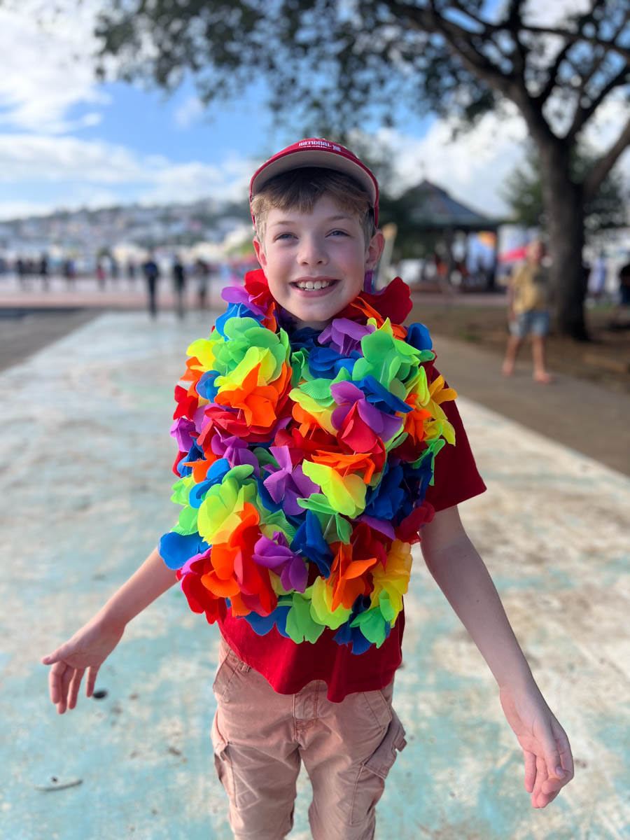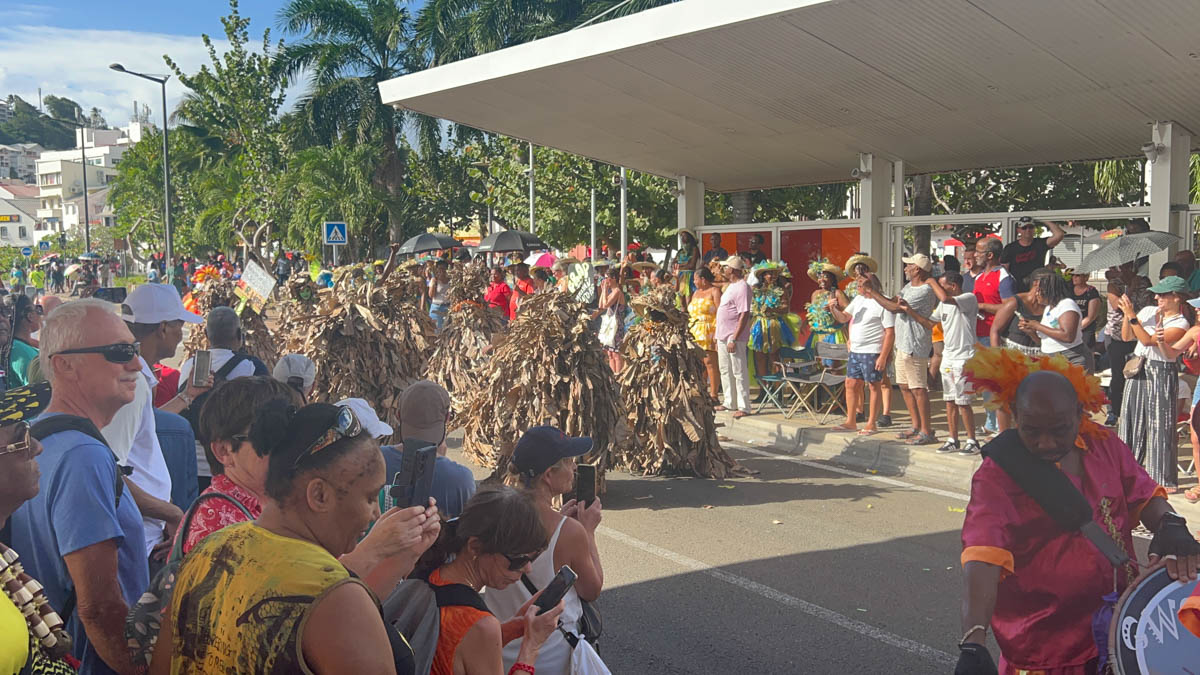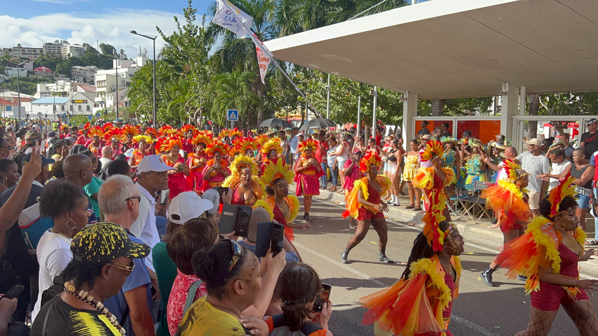 Dimanche 19 janvier c’est le pré-carnaval de Fort de France. Nous débarquons pour voir le village exposants, déjeuner crêpes bretonnes et admiration du défilé coloré et musical. Une vingtaine de groupes de différentes associations présentent leur chorégraphie : des danseurs, des tambours maracas et trompettes lambi défilent pendant 3 heures dans les rues. Le public est au rendez-vous dans une ambiance survoltée. Pour participer nous aussi nous revêtons chacun un collier de fleurs multicolores. Au bout d’une heure de danse, nous repartons.