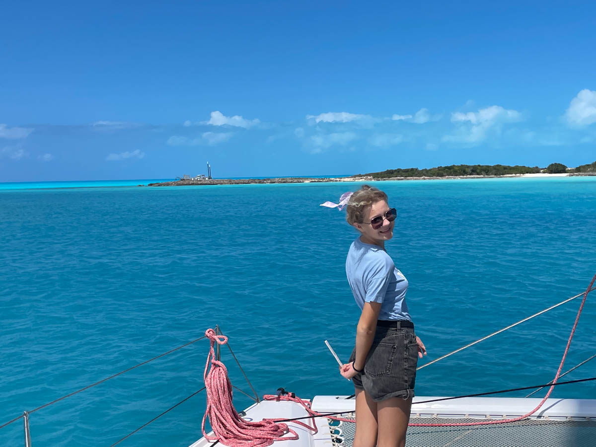 De l’autre côté, les couleurs sont encore plus éblouissantes, tout en dégradés de bleu ! Apsara est juste derrière nous et nous nous prenons mutuellement en photo pendant que nous entamons les derniers bords vers l’entrée de George Town.