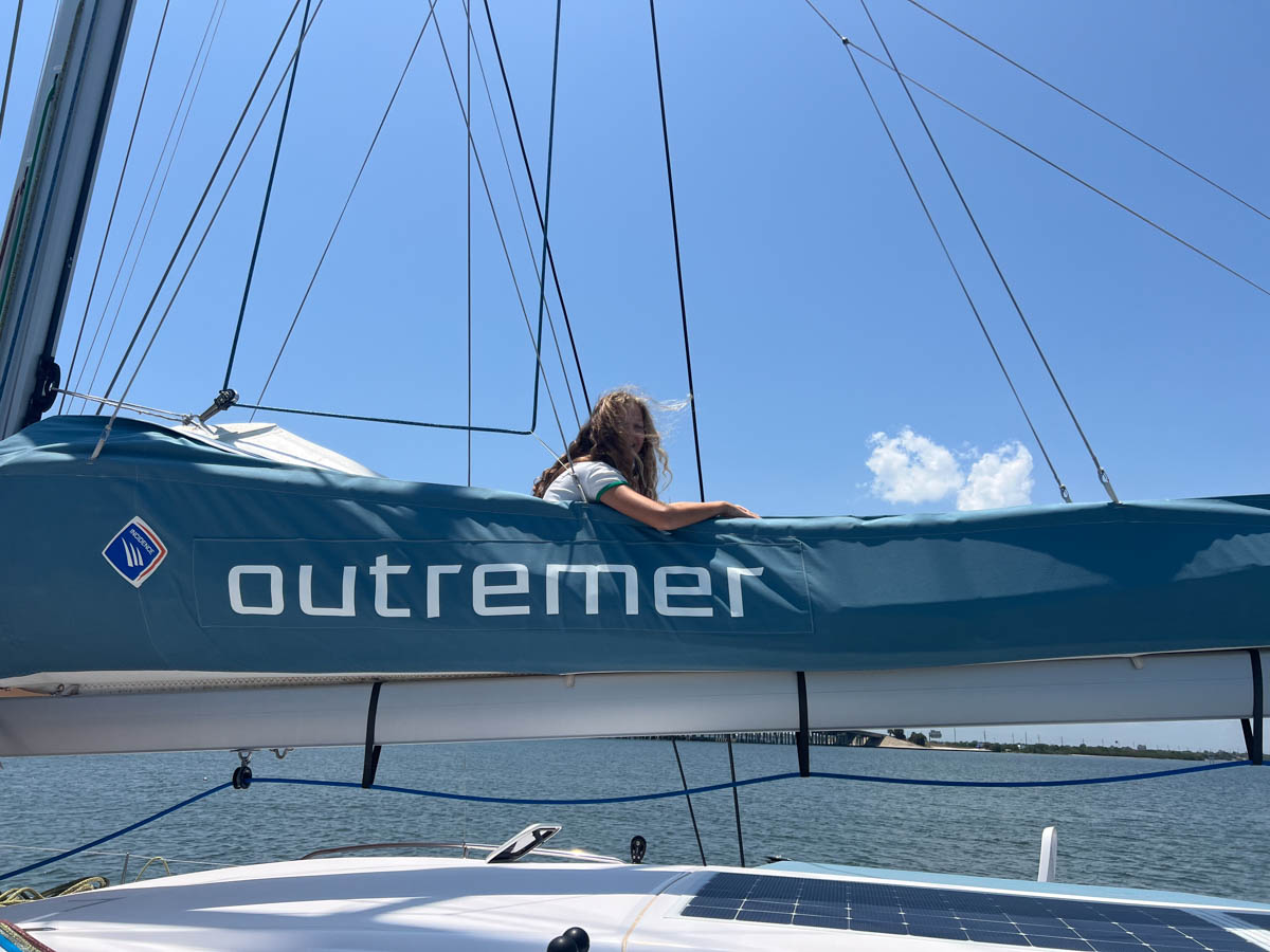 Arthur et Alice font leur quart en suivant les instructions d’Antoine à la lettre : rester toujours dans le courant pour continuer à cavaler sur les vagues. A 1h du matin c’est le moment d’empanner vers Cape Canaveral. Magali prend le relais, le courant baisse à 0,5 nds et le vent aussi. Il faut rester sous la route directe pour ne pas finir au près comme la dernière fois. Le vent oscille de 20 degrés d’un côté et l’autre. Antoine reprend la barre à 4h30 pour la dernière partie vers le port. Le vent se meure à 5-7 nds mais nous restons à la voile jusqu’au bout.