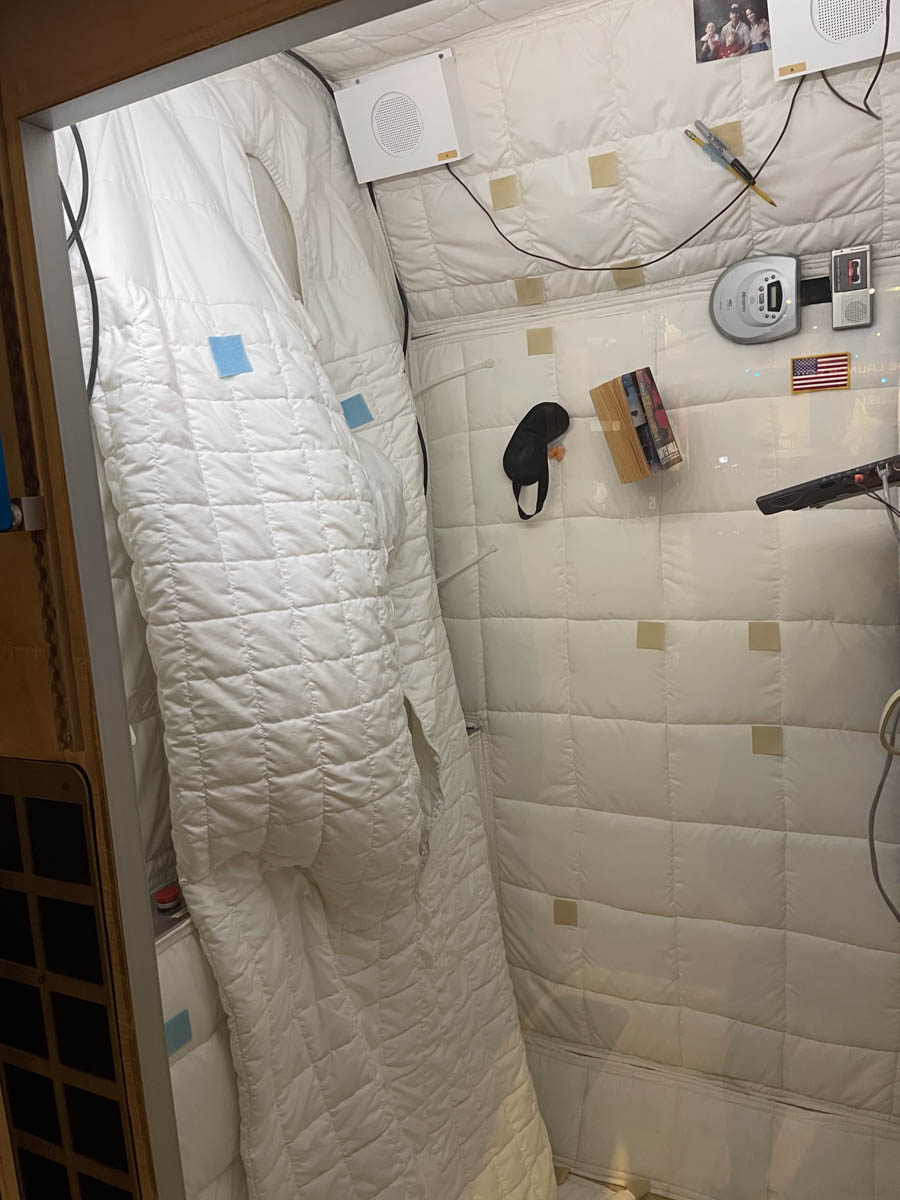 Dans le hall, nous voyons un module lunaire et un module de commande, les équipements des astronautes et pouvons même toucher une pierre de Lune accessible dans une vitrine spéciale.