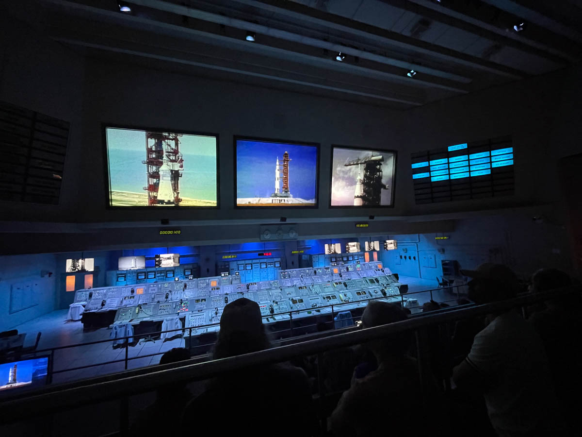 Nous accédons alors à un immense hall qui contient une véritable fusée Saturne V, la plus puissante de tous les temps. Nous voyons tous les étages et composants de la fusée : 3 étages détachables équipés de moteurs dont le dernier contient le LEM et propulse le module de commande et de service lui-même motorisé. Les deux premiers étages envoyaient le troisième en orbite avec tout son chargement puis le troisième étage propulsait les modules sur la trajectoire de transit avec la Lune. Ensuite, le module de commande et de service devait faire demi-tour dans l’espace pour se connecter au module d’alunissage (LEM) qui se séparait pour alunir avant de revenir au module en orbite autour de la Lune qui ramenait les astronautes vers la Terre.