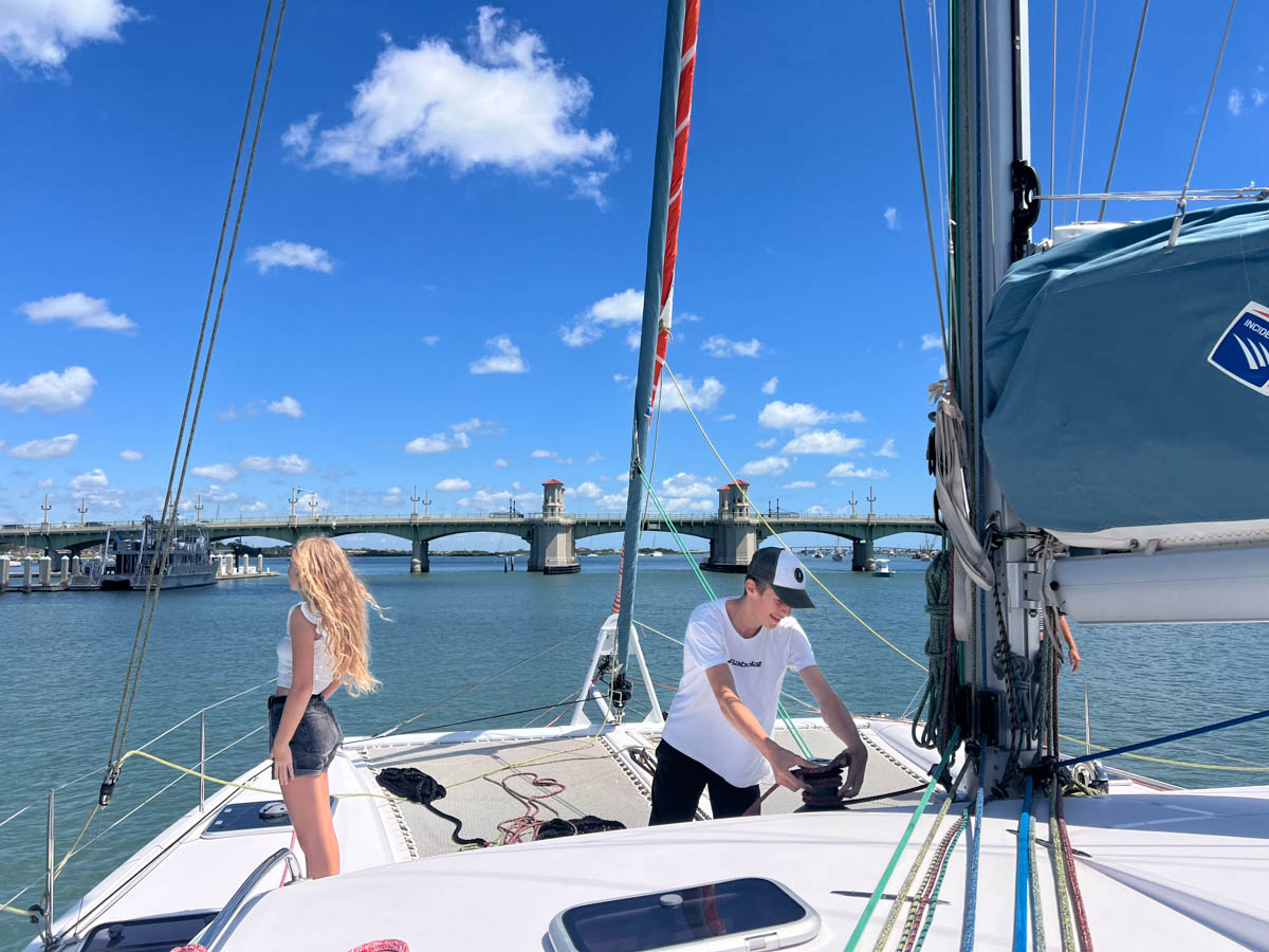 Après deux semaines avec les copains, nous leur avons encore dit au revoir. Les examens et la météo nous appellent à partir dès ce 13 mai matin de St Augustine. Nous avons décidé d’être prudents et de ne pas risquer une « fermeture » du Cape Hatteras par des vents de secteur Nord qui lèveraient une mer démontée en s’opposant au Gulf Stream. Les prévisions actuellement nous indiquent un peu de vent de secteur Sud ou Ouest jusqu’à la baie de Chesapeake pendant les 3 prochains jours. Parfait pour surfer le Gulf Stream tranquillement avec une mer pas trop agitée et, normalement, des fronts orageux qui devraient nous précéder.