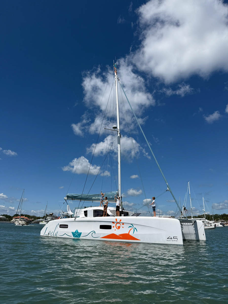 Nous décidons alors de réduire l’allure pour tenter de les laisser passer devant nous. Le gennaker est roulé, puis nous prenons un ris puis deux au cas où le vent forcirait dans les orages. La famille dîne de soupe pendant qu’Antoine surveille attentivement les orages sur le radar du bateau et les images radar météo que nous captons grâce à notre proximité avec la terre. Nous zigzaguons pour les éviter et réussissons à n’en prendre aucun directement sur nous. Le plus proche passe 2MN à l’est. Ce qui nous préoccupe le plus, ce ne sont pas les vents, nous savons que le bateau est fait pour encaisser sans aucun souci ; ce sont les éclairs qui ont une fâcheuse tendance à désactiver notre carte électronique de girouette-anémomètre.