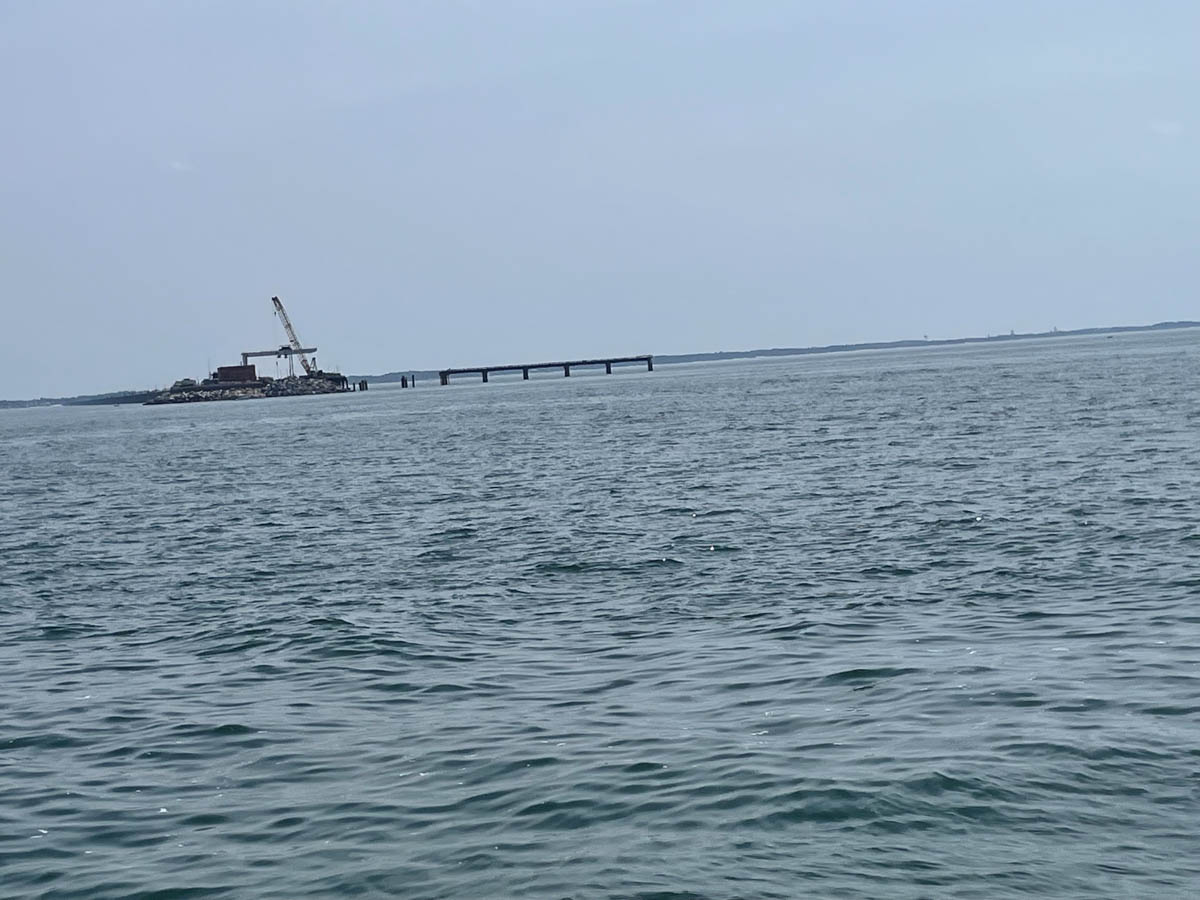 Après les siestes du matin, Martin, Mathilde et Antoine sortent le code zéro car nous pressentons des vents faibles et erratiques comme en Méditerranée mais à midi le vent tombe tout à fait et nous repassons au moteur ! Magali profite du calme pour avancer sur le blog. Nous déjeunons en slalomant entre les cargos et leurs chenaux à l’entrée de la baie et passons enfin le pont-tunnel à 14h45. Nous pouvons alors refaire de la voile jusqu’à l’entrée de Back River où nous avons prévu de passer la nuit.