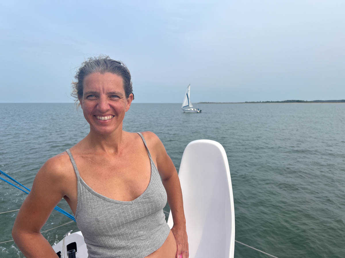 Résultat, à 21h, nous n’avons plus beaucoup de vent mais il est revenu de derrière après les orages. Il remonte pendant le quart d’Arthur et Alice et nous filons 8nds vers l’entrée de Chesapeake jusqu’au quart de Magali où le vent retombe jusqu’à presque rien, obligeant Magali à démarrer les moteurs pour continuer d’avancer pendant 45minutes. Puis le vent tourne à nouveau pendant le quart d’Antoine obligeant à rouler le gennaker pour passer au près.