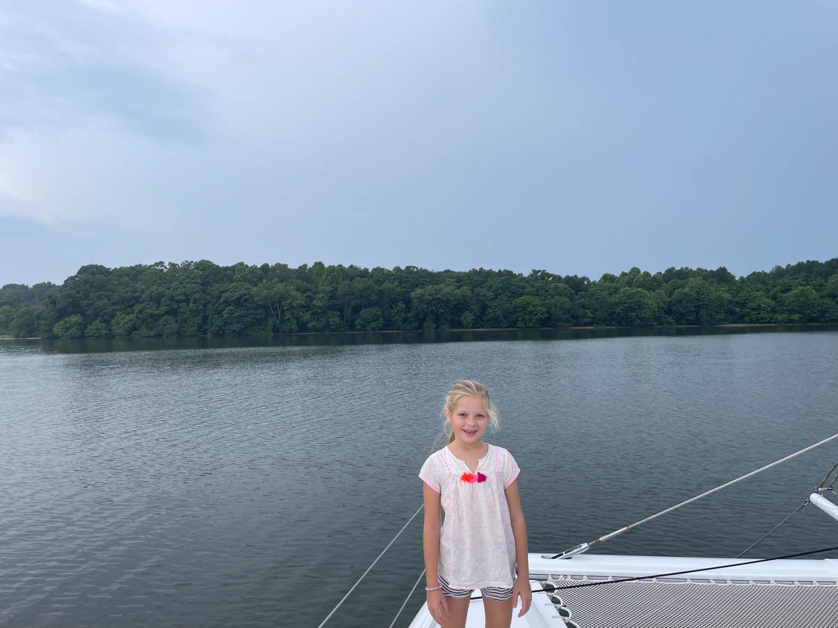 Mercredi 18 juin temps gris de brume chaude et sans vent. Nous partons au moteur vers Sassafras River en traversant prudemment le banc qui barre l’entrée de Swan Creek. Nous comprenons pourquoi l’aigle est le symbole des USA car nous en voyons partout, sur chaque poteau un couple niche, beaucoup de rapaces survolent également les berges. Ensuite nous hissons les voiles et faisons un peu de voile pour rejoindre la rivière. C’est plutôt rare dans la Chesapeake avec le temps actuel. Arrivés au mouillage les orages éclatent au nord et au sud mais pas sur nous, ouf ! Ça nous amène tout de même un peu de pluie. Mathilde s’occupe en nous faisant des cookies et les autres ressortent un puzzle.