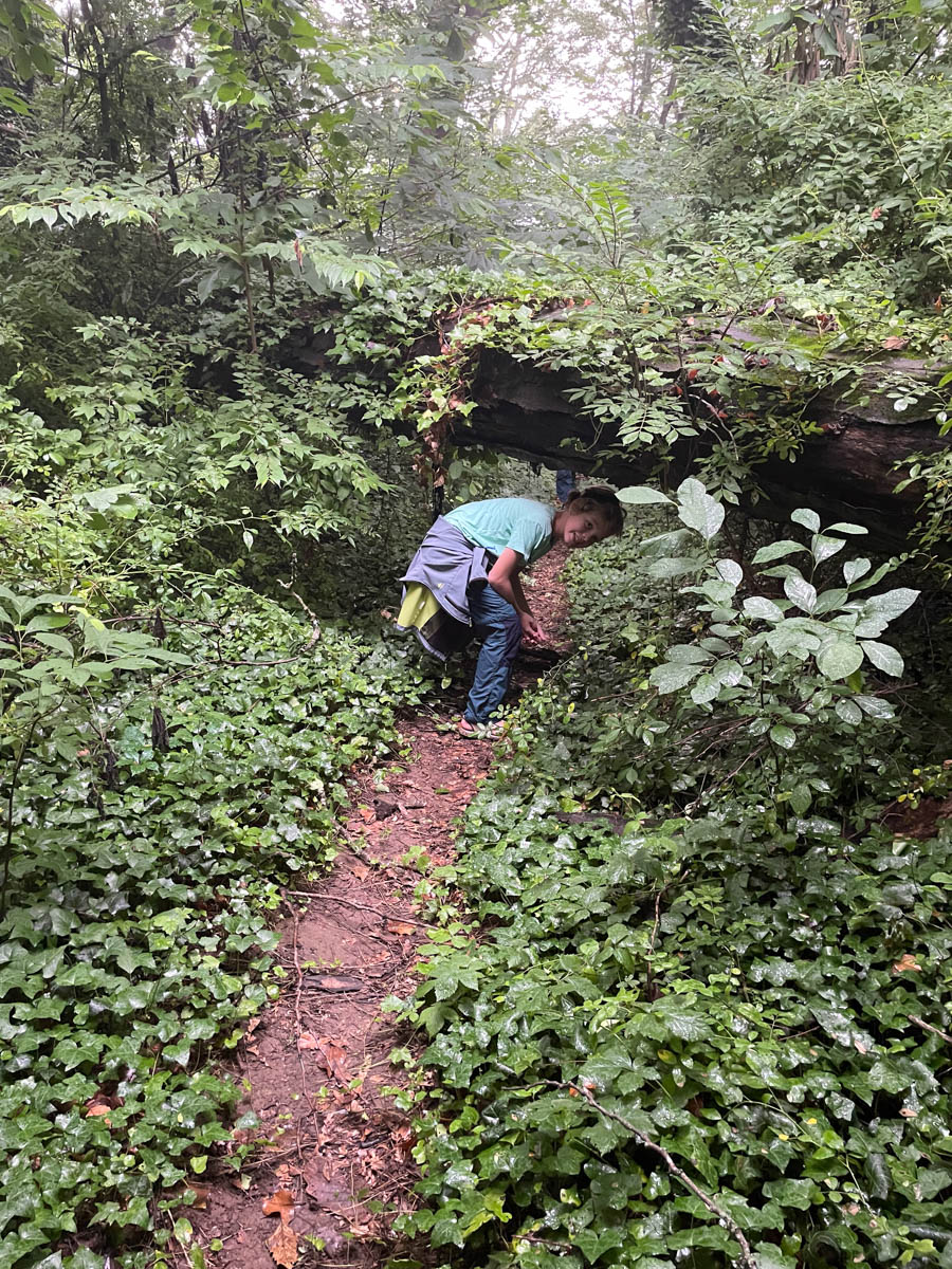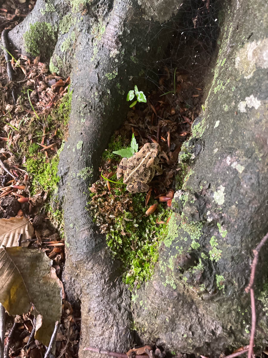 Avec Matlo nous attendons les derniers nuages pour mettre l’annexe à l’eau afin d’aller nous dégourdir les jambes. Il y a un petit ponton à côté d’une cale de mise à l’eau mais tout est placardé interdit avec risque de 100$ d’amende… comme il n’y a vraiment personne nous prenons le risque. Nous cherchons un sentier dans la forêt dense. Après un mini arboretum nous trouvons un sentier balisé avec des toutes petites grenouilles qui sautent devant nous. Nous contournons et parfois sautons au-dessus de gros troncs de chênes abreuvés par les eaux marécageuses de la rivière toute proche. Quelques centaines de mètres plus loin nous retombons sur la route, déserte, nous ne risquons rien. C’est vraiment agréable cette petite randonnée en forêt tempérée !