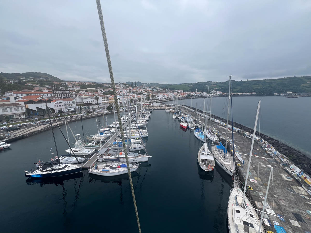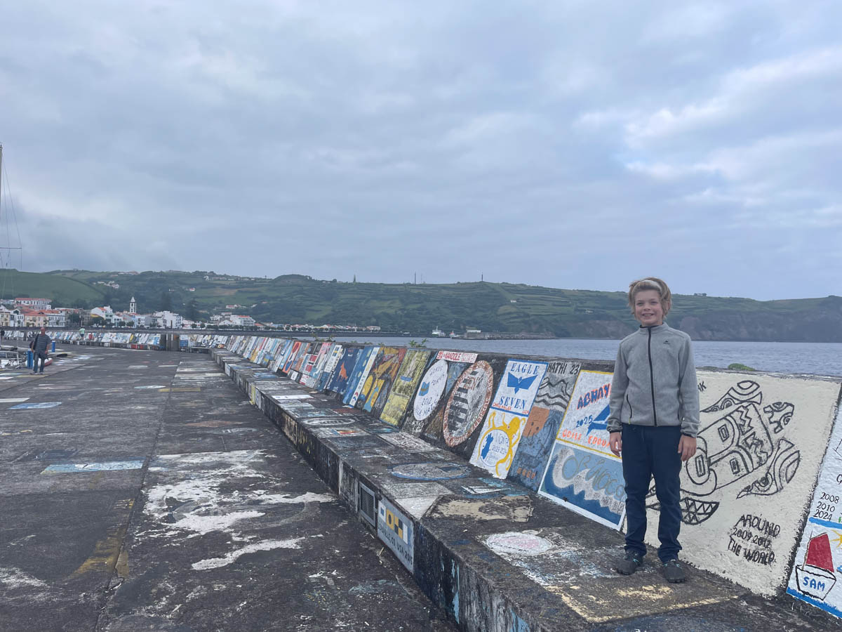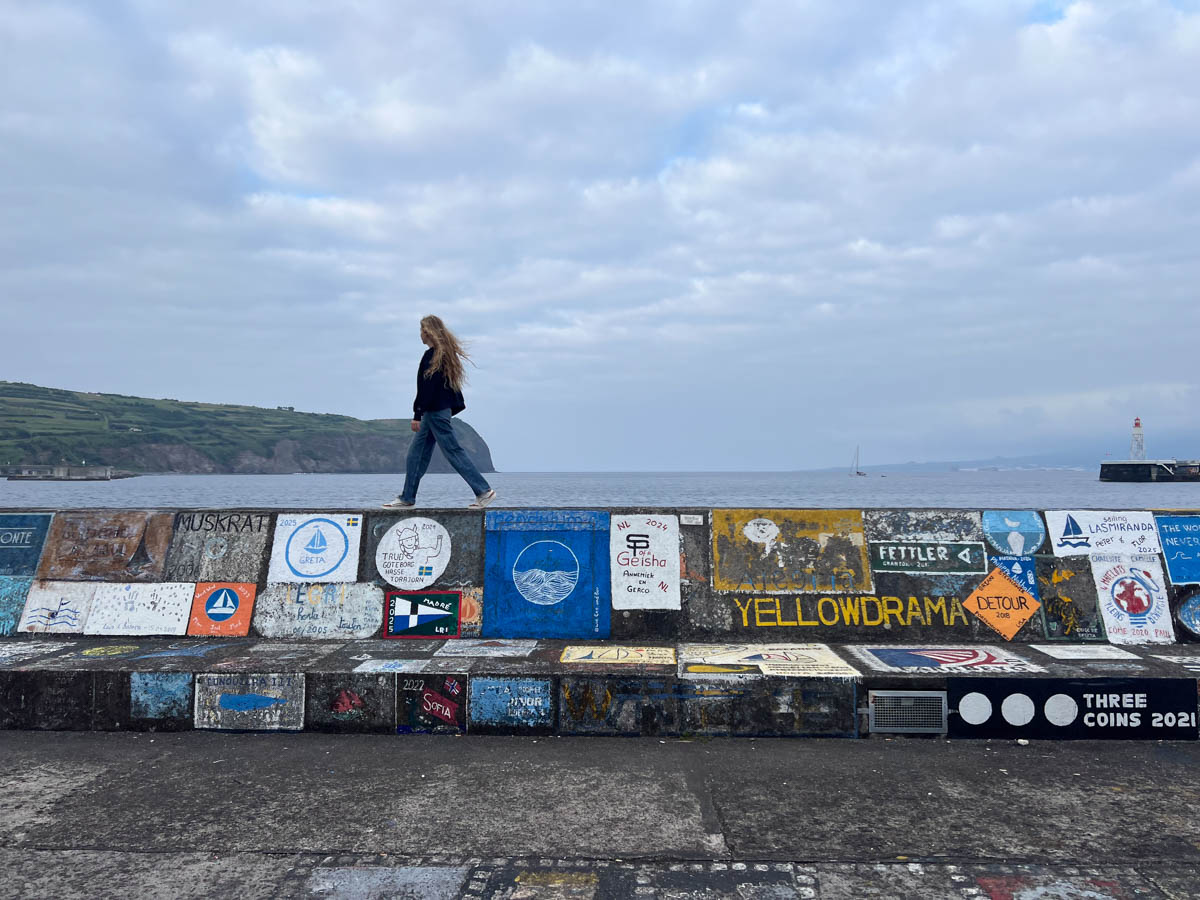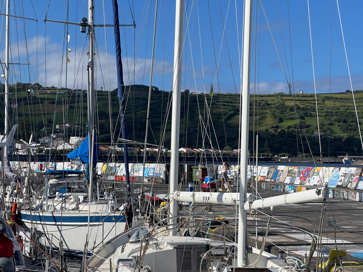 Après 9 jours de navigation depuis New York nous arrivons en vue de l’île de Faial, une des 7 îles principales de l’archipel des Açores. Ces îles volcaniques sont sur la jointure entre des plaques de la croûte terrestre. L’activité volcanique est toujours surveillée même s’il n’y a pas de volcan en activité. La dernière éruption importante date de 1957 où l’île a été agrandie de 2 km2 de cendres volcaniques à l’ouest, l’érosion de la mer a déjà tout déblayé aujourd’hui. Le port de Horta est un arrêt mythique pour les navigateurs de transat. Chacun peut peindre un souvenir de son passage sur les quais (il y en a même qui disent que ça porte malheur de ne pas le faire). Nous allons donc nous y arrêter quelques jours avant de repartir à l’assaut de l’océan.