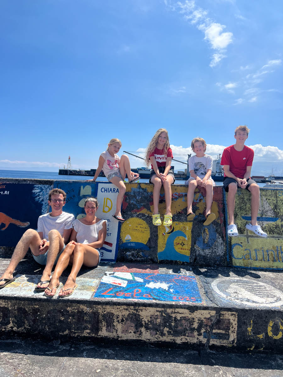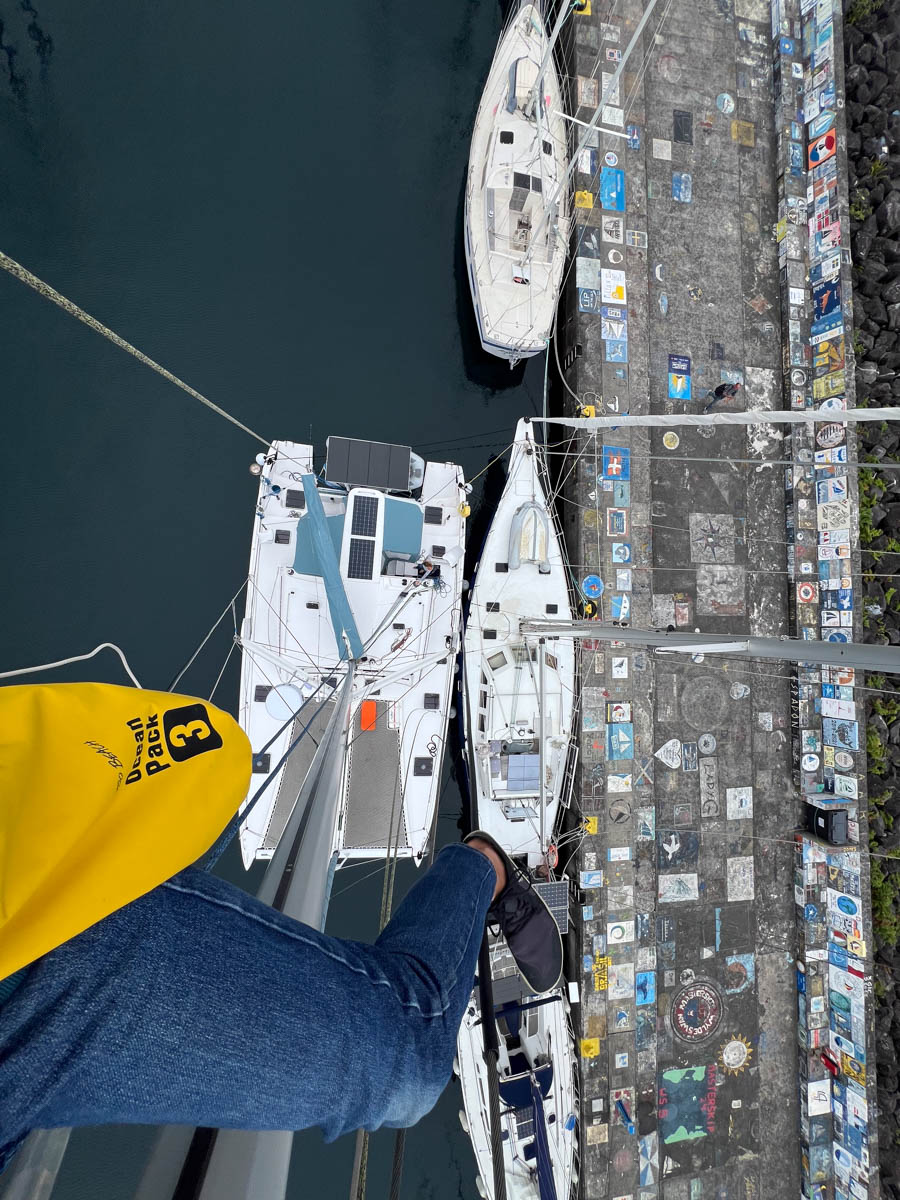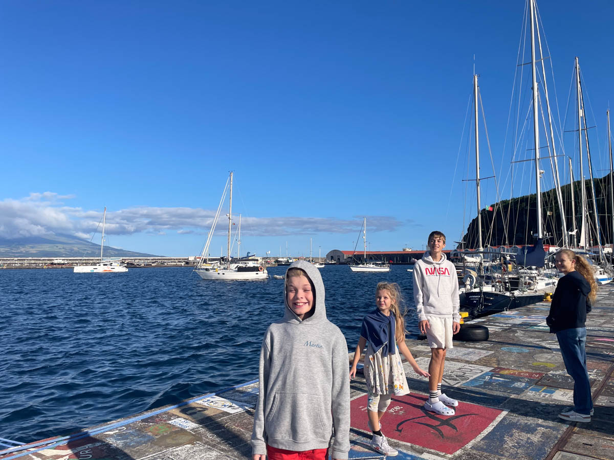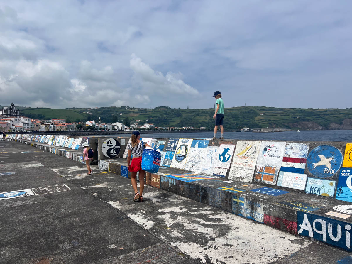 Après 9 jours de navigation depuis New York nous arrivons en vue de l’île de Faial, une des 7 îles principales de l’archipel des Açores. Ces îles volcaniques sont sur la jointure entre des plaques de la croûte terrestre. L’activité volcanique est toujours surveillée même s’il n’y a pas de volcan en activité. La dernière éruption importante date de 1957 où l’île a été agrandie de 2 km2 de cendres volcaniques à l’ouest, l’érosion de la mer a déjà tout déblayé aujourd’hui. Le port de Horta est un arrêt mythique pour les navigateurs de transat. Chacun peut peindre un souvenir de son passage sur les quais (il y en a même qui disent que ça porte malheur de ne pas le faire). Nous allons donc nous y arrêter quelques jours avant de repartir à l’assaut de l’océan.