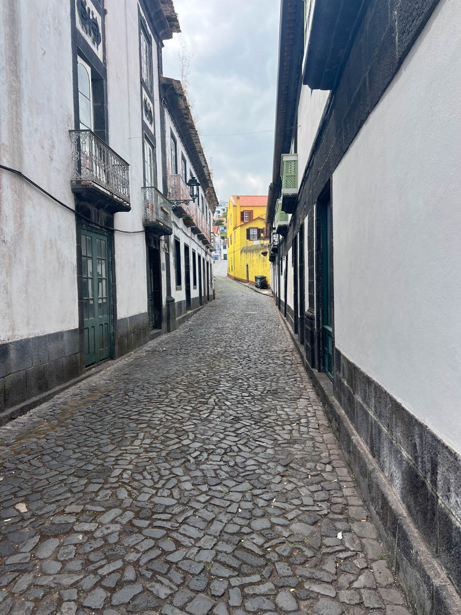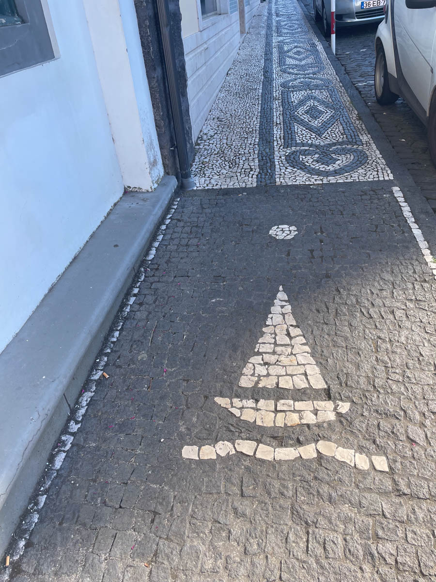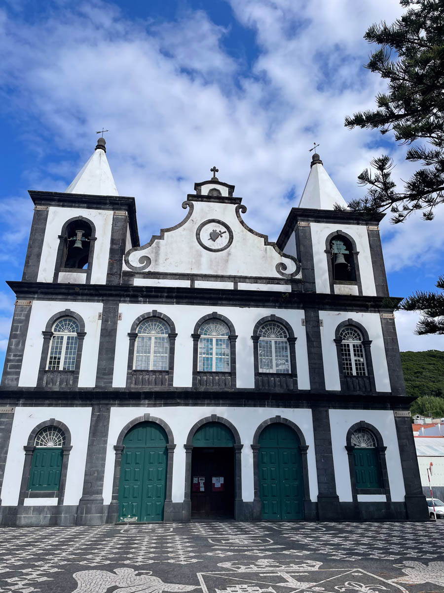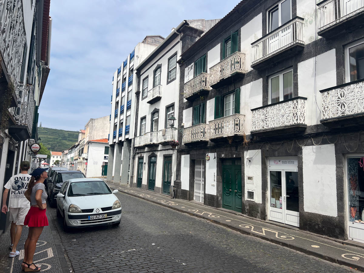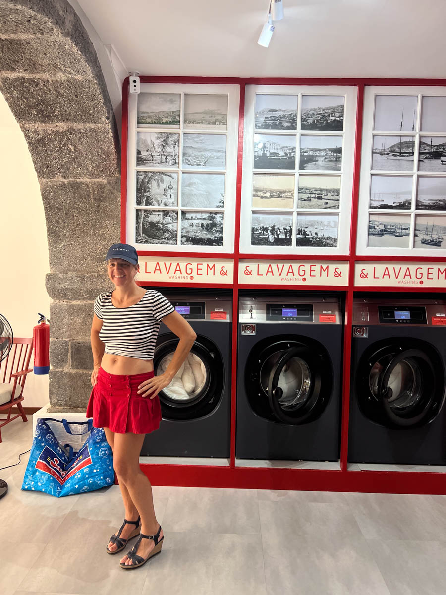 Vendredi 18 juillet nous profitons du calme du port pour un repos bien mérité. En effet quand nous naviguons nous sommes ballottés par les vagues mais nous subissons aussi en continu le bruit du vent et de l’eau contre les coques. Après le déjeuner Antoine et Magali se lancent dans le nettoyage au Karcher du bateau et des coussins. Une bonne couche de sel avait tout recouvert. Ensuite Magali et Alice vont faire 3 machines à la laverie. Nous découvrons ainsi une partie de la ville avec ses églises en pierre volcanique noire et les murs blanchis à la chaux. Les trottoirs sont faits en galets noirs et blancs agencés en motifs géométriques ou figuratifs (voiliers, soleil, baleines, poissons…). Nous assez surpris de constater que la ville est très peu peuplée : beaucoup de boutiques et restaurants fermés et très peu de touristes. Nous devons être un peu tard dans la saison des voiliers.