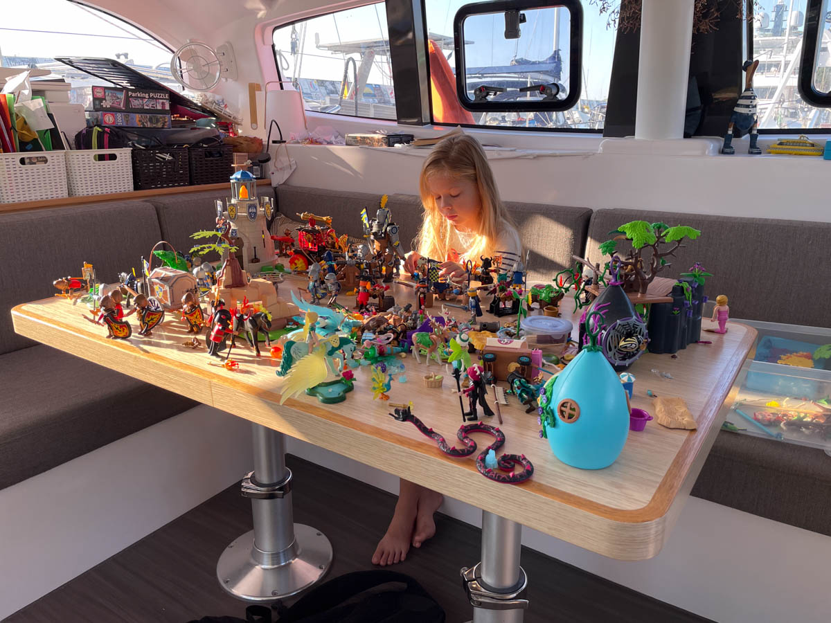 Magali va faire des petites courses au marché. Martin et Mathilde ne se lassent pas de jouer au playmobil, pour une fois que les vagues ne font pas valser leur monde. La table du carré s’est transformé en plateau de jeu pendant quelques jours !